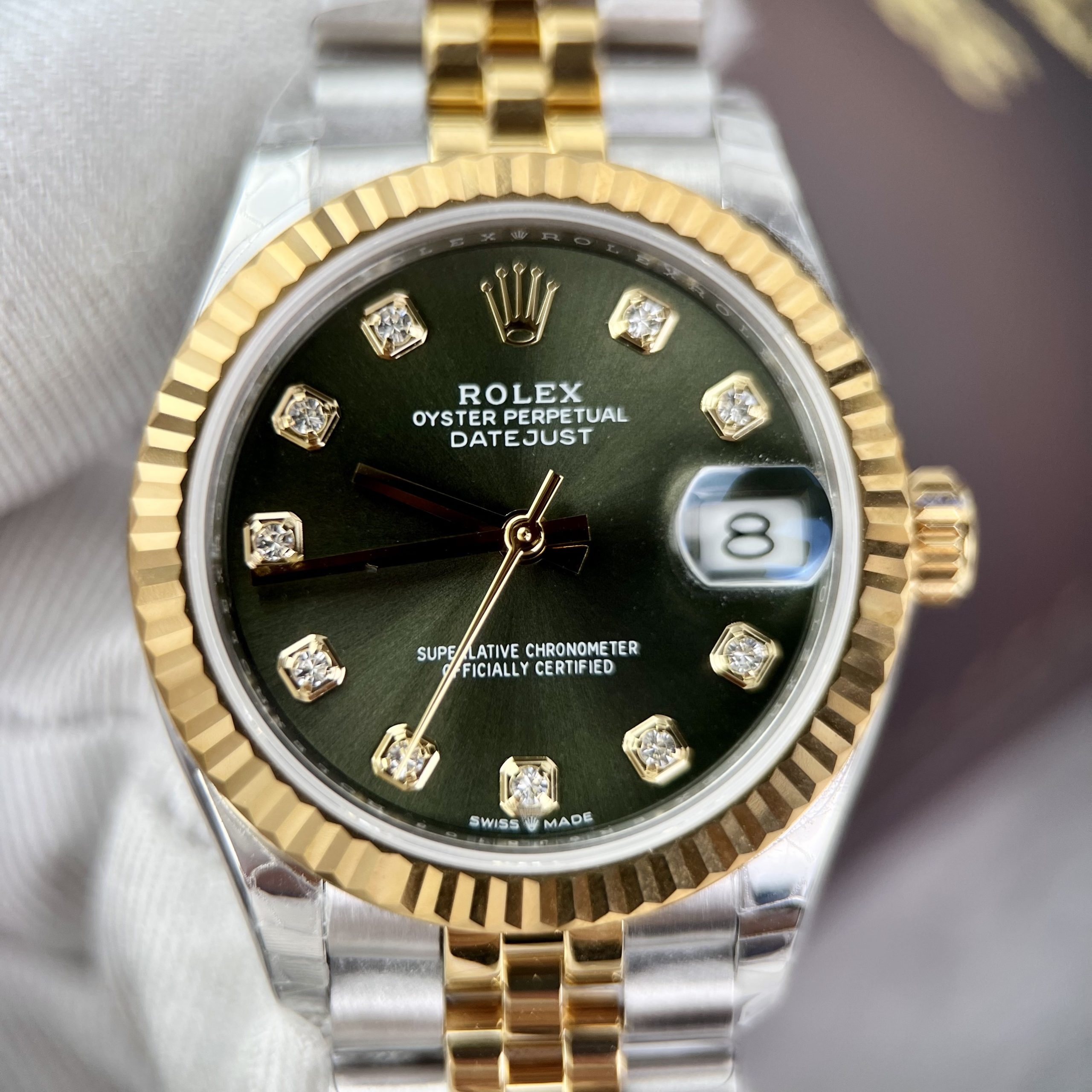Rolex DateJust Green Dial Best Replica Watch Automatic Women highest version available at DWatch.