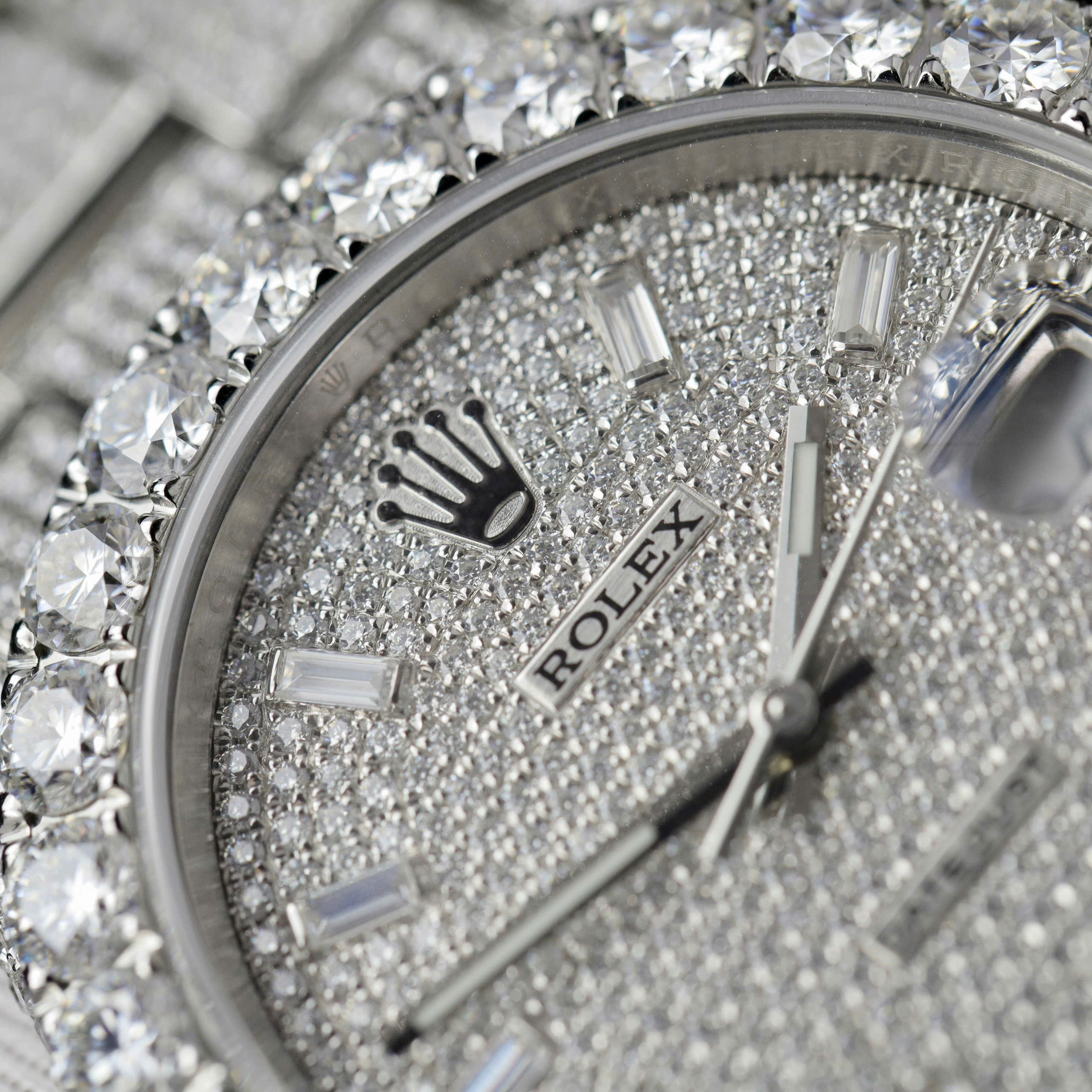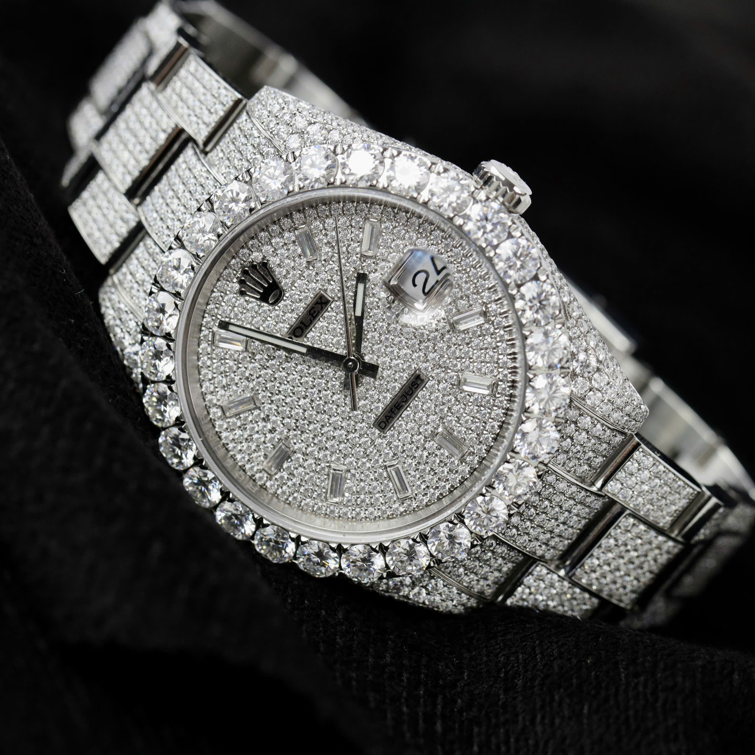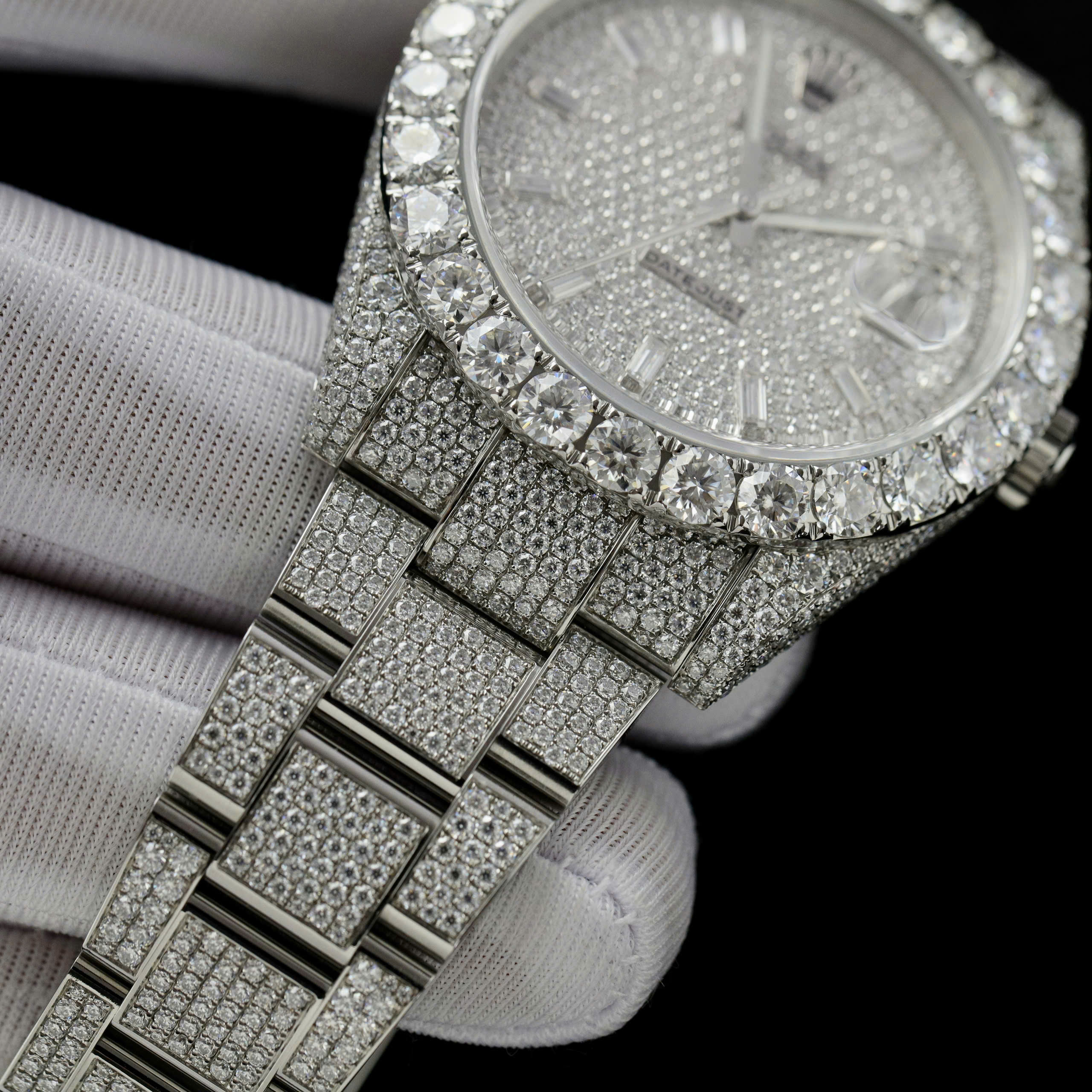 Rolex DateJust Replica Watch Custom Full Moissanite Diamonds is available at DWatch Global.