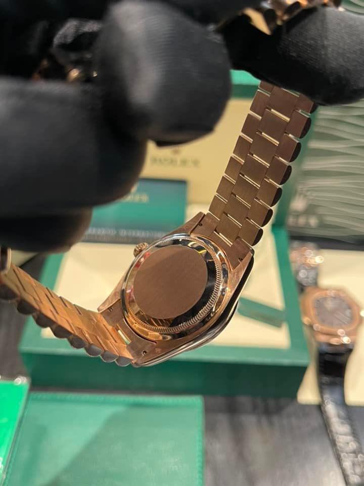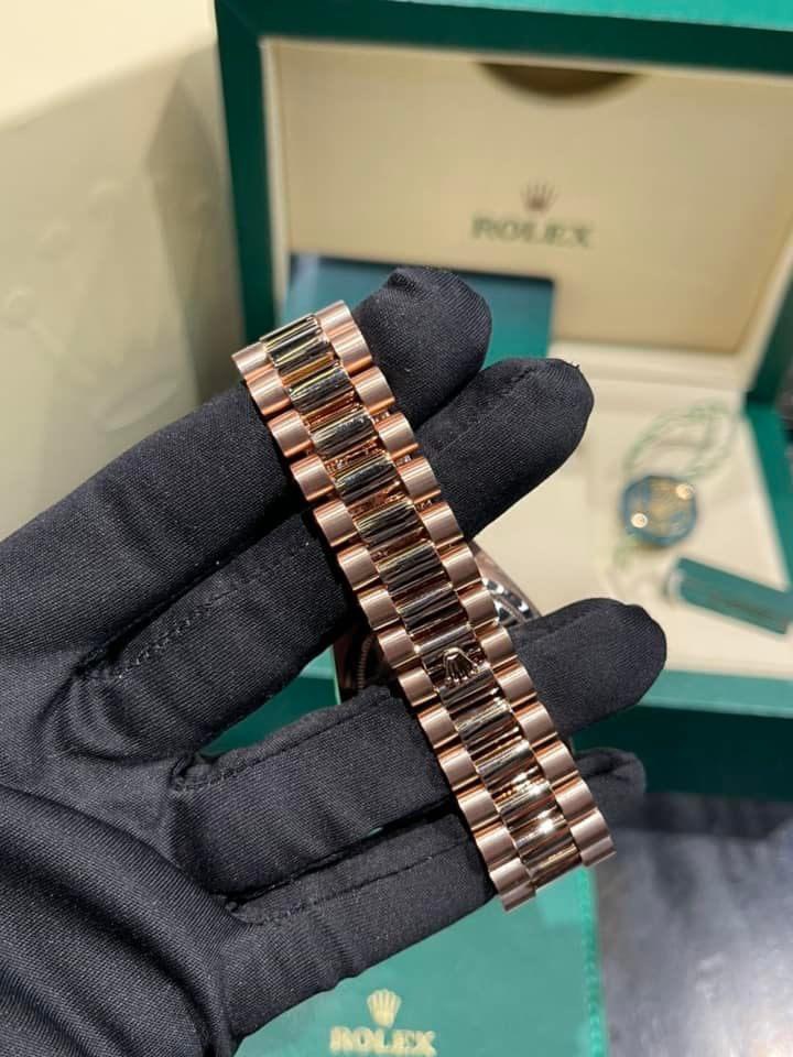 Notably, the Rolex Day-Date is inseparable from its President bracelet. Crafted with the same precision as Everose Gold material technology, the President bracelet exemplifies meticulous design, echoing the elegance of Day-Date models since their inception in 1956. With its semicircular three-piece links, it embodies sophistication and luxury.