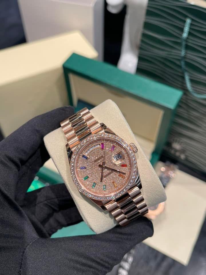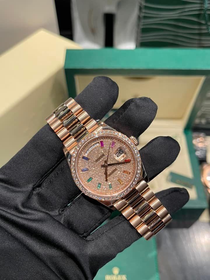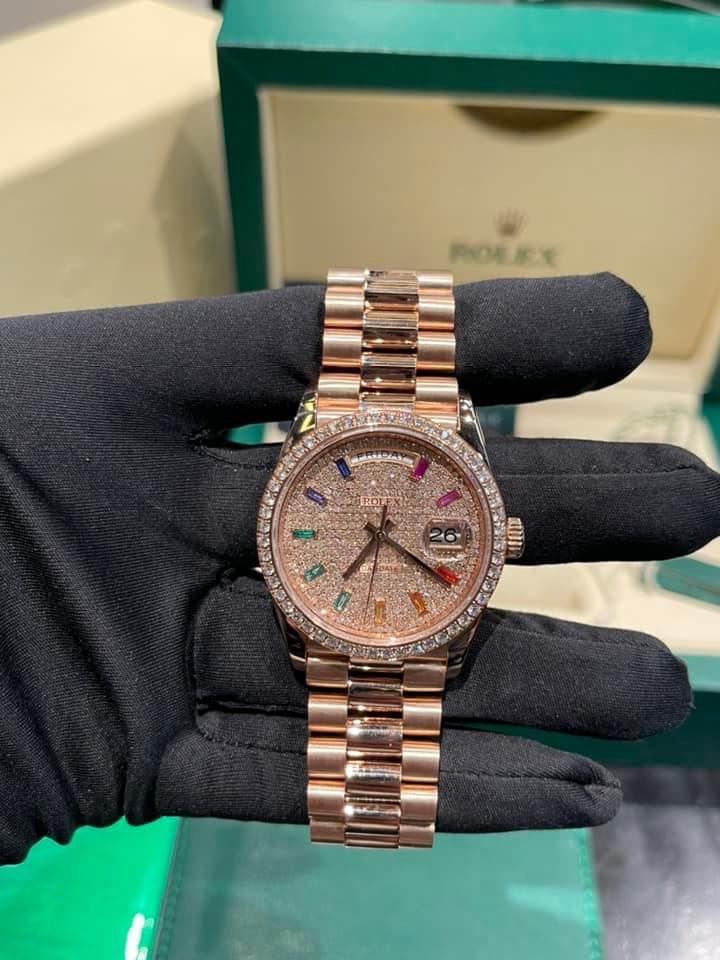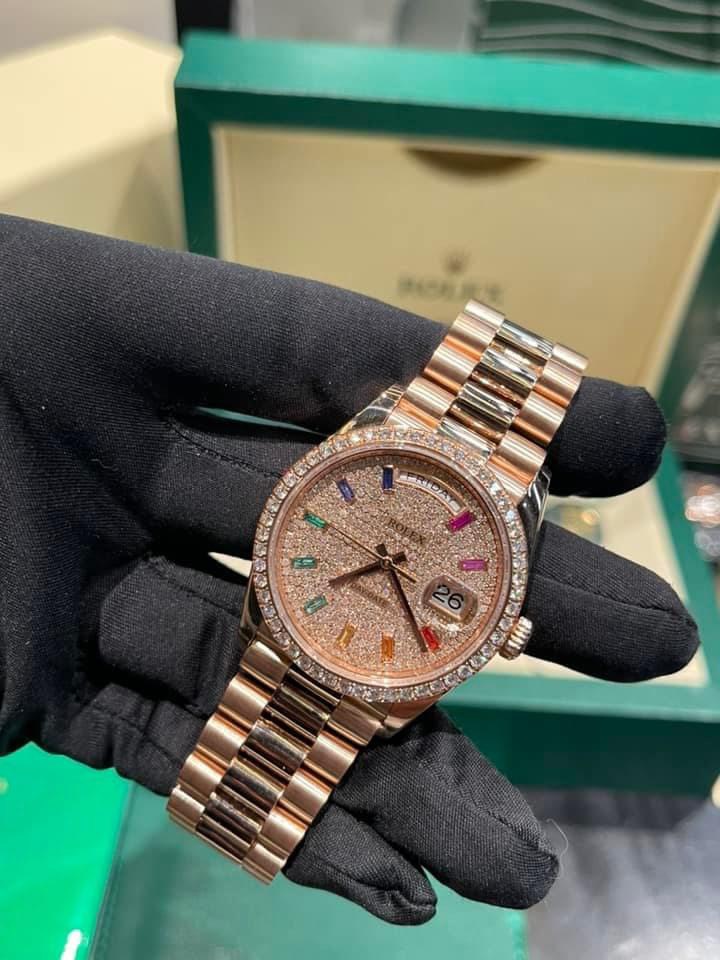 Similar to sculpting a profoundly humane artwork, jewelers skillfully set carefully cut and selected gemstones onto the watch face, creating an everlasting connection. From diamond indices to sapphire stones, each stone is flawlessly uniform in size, ensuring perfection. Therefore, the Rolex Day-Date natural diamond watch customs in Hong Kong, model 128345RBR, is poised to impress even the most discerning individuals.