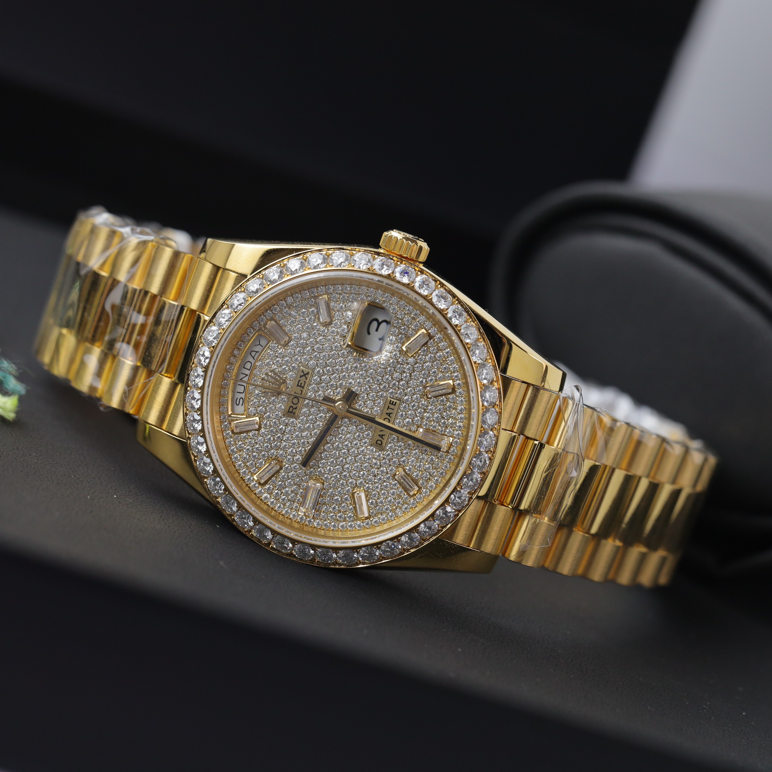 Rolex Day-Date 18K Gold Wrapped Customs Moissanite Diamonds GM V3 is available at DWatch Global.