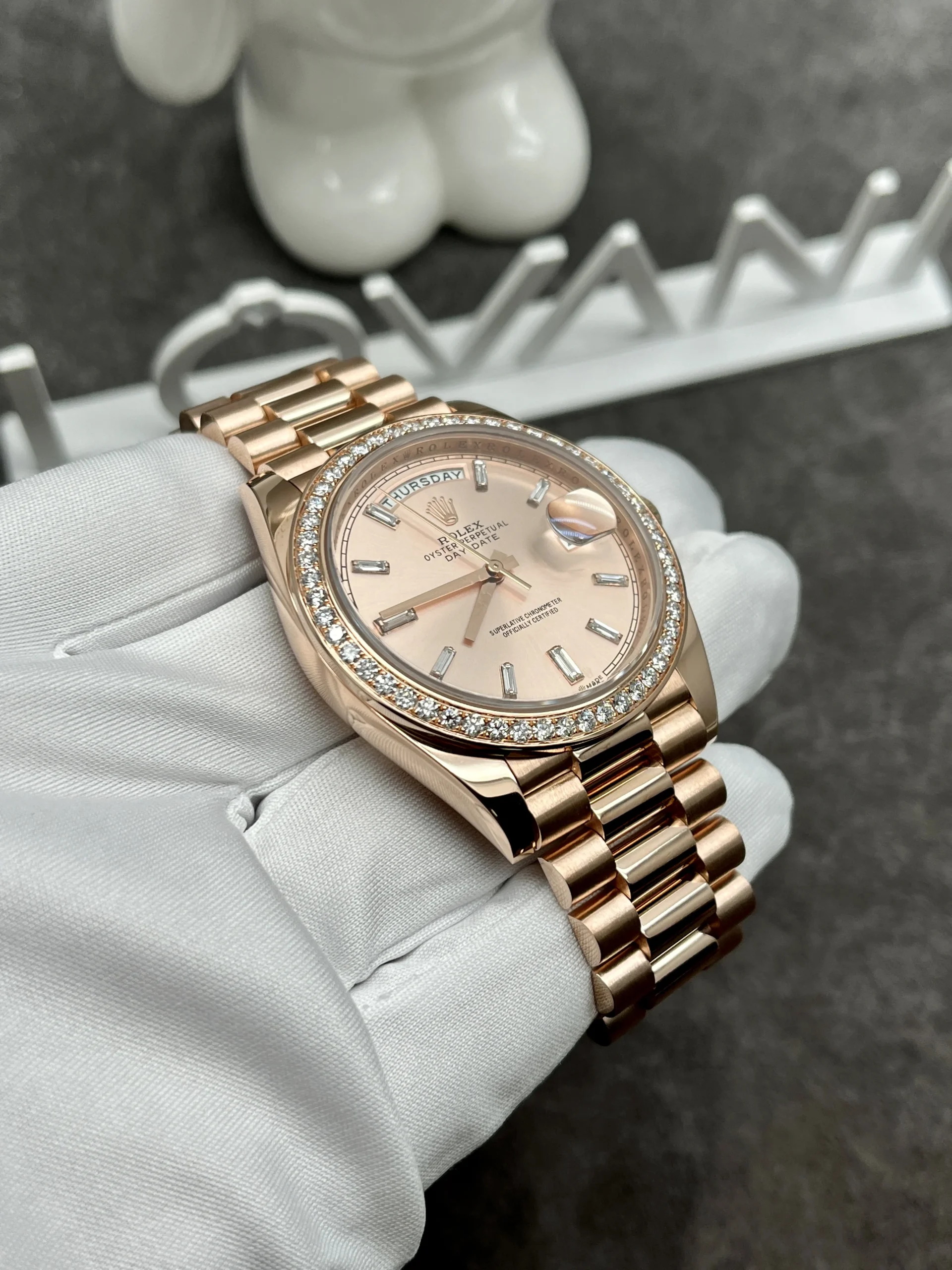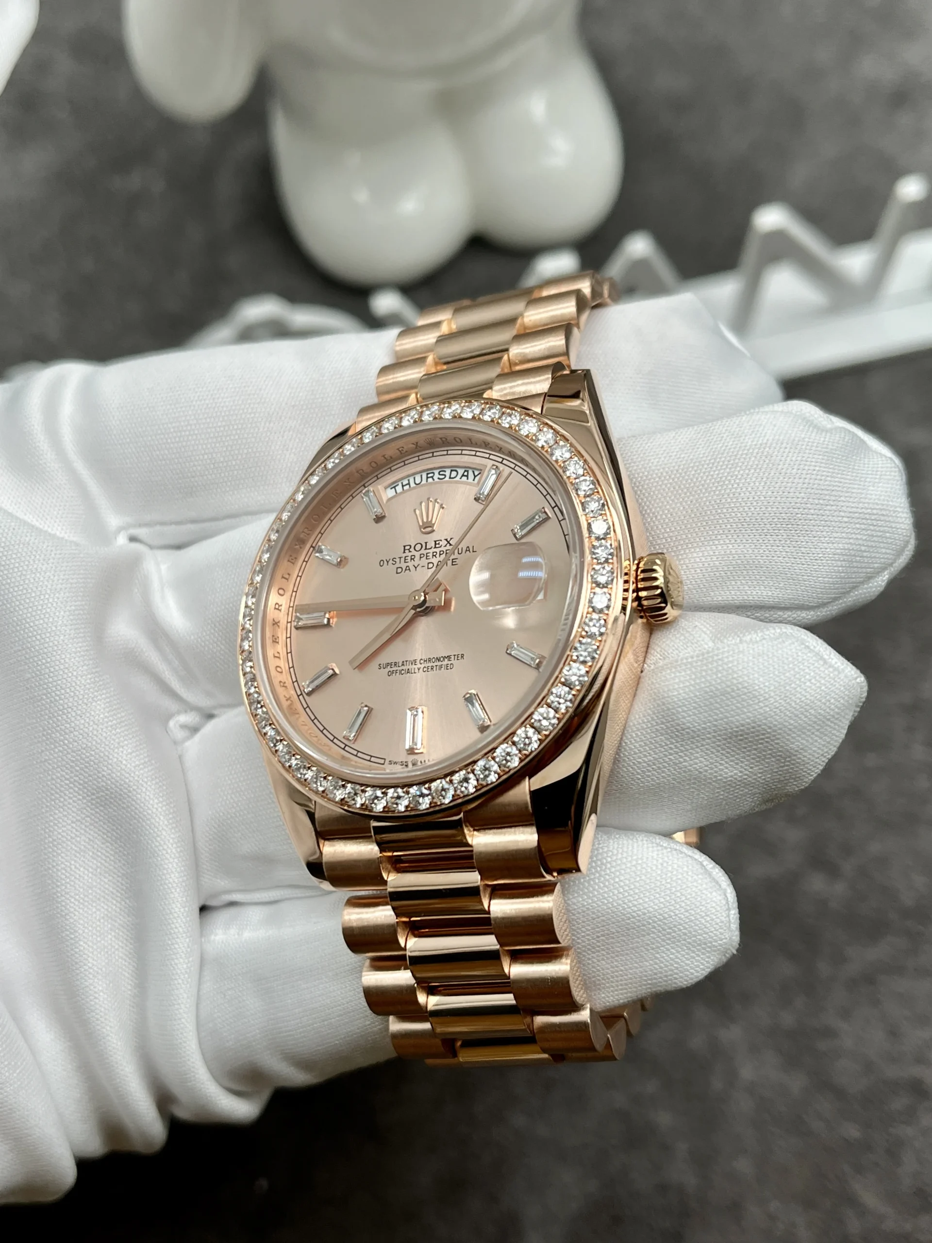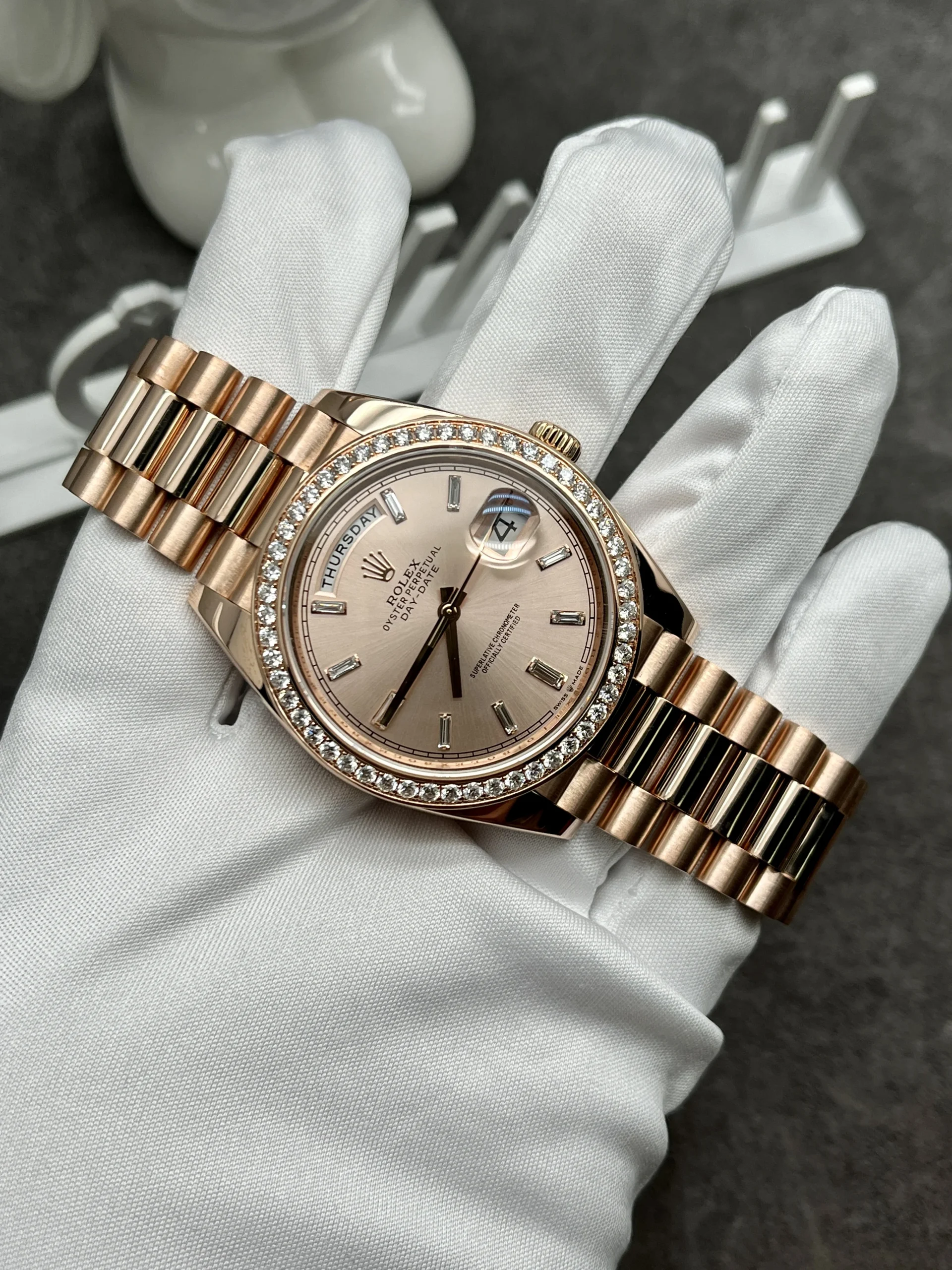 Rolex Day-Date 18K Real Gold Customs Natural Diamonds Best Replica the most premium version on the market is available at DWatch Global.