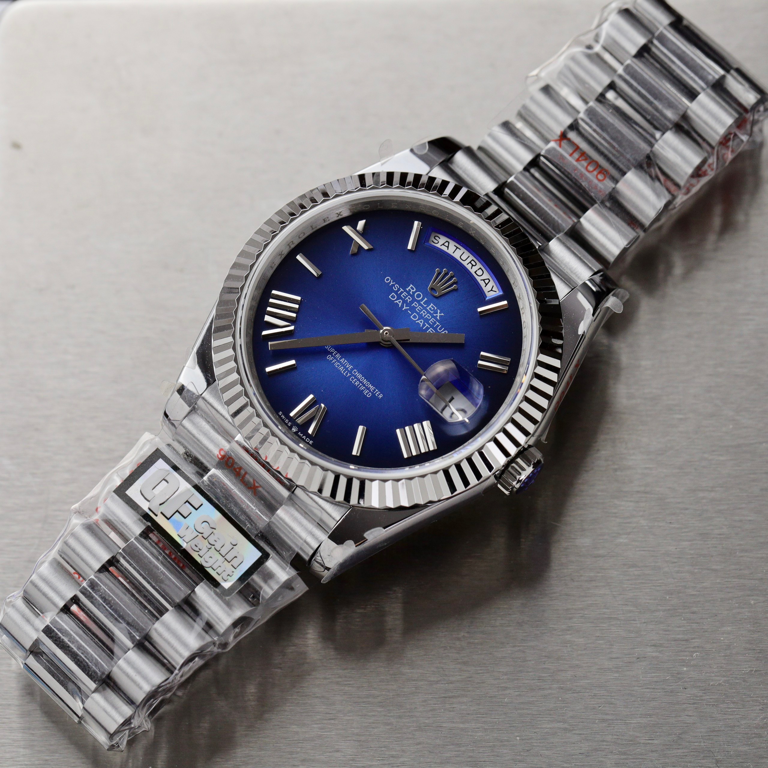 Rolex Day-Date 228236 Blue Ombre Best Replica 186 Grams QF Factory highest version available at DWatch.