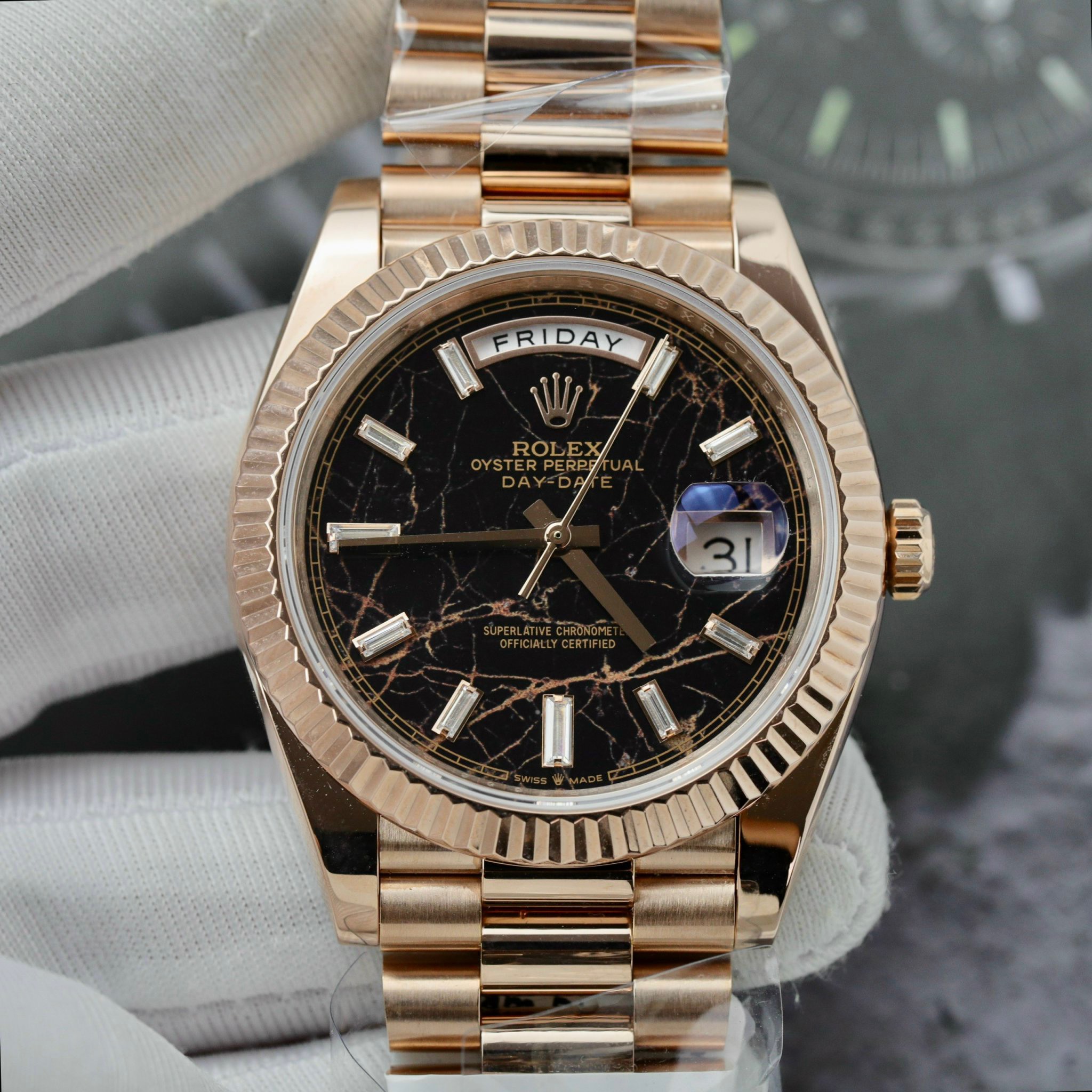Rolex Day-Date Eisenkiesel Dial 18K Gold Wrapped GM Factory V3 is available at DWatch Global.