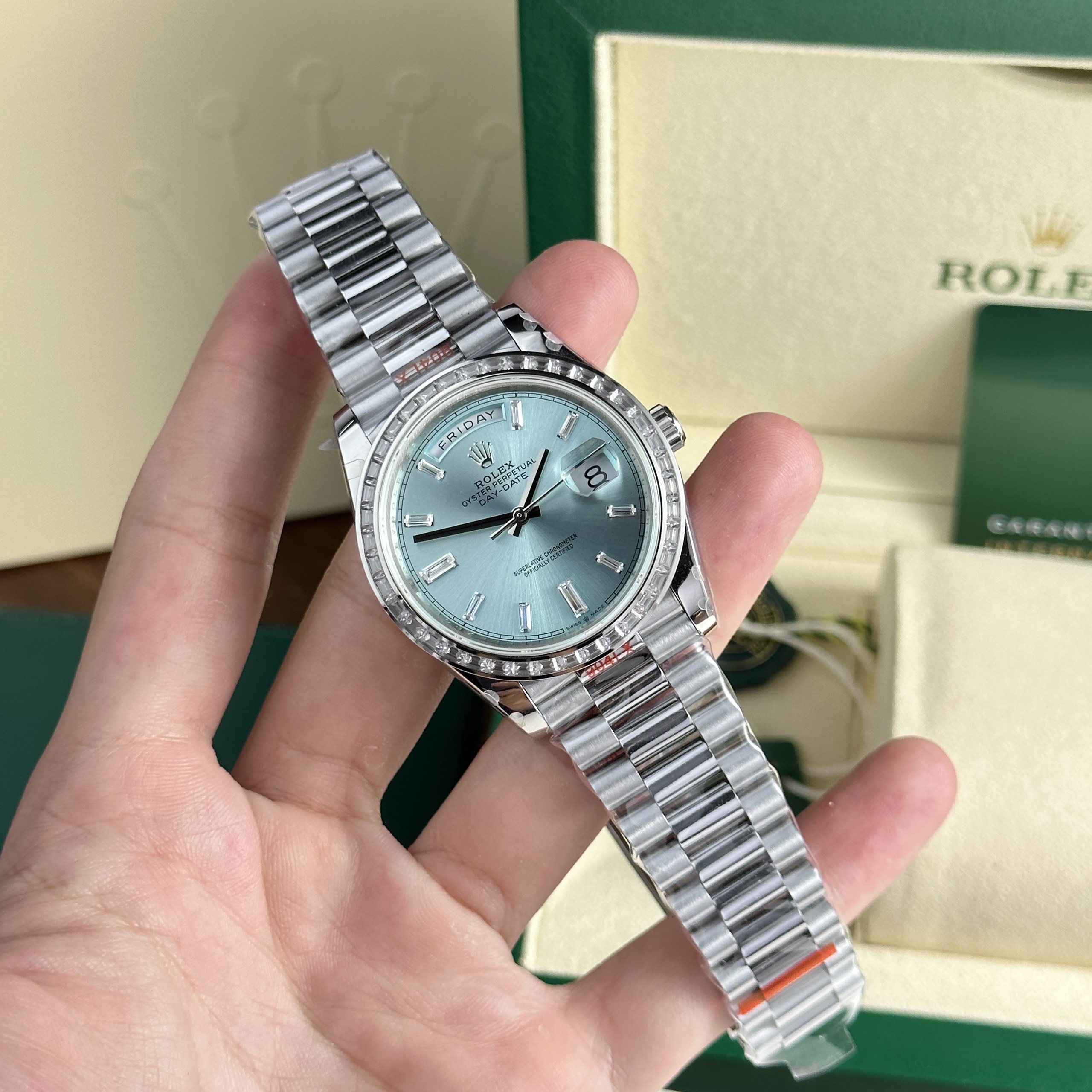 Rolex Day-Date Ice Blue Dial Bezel Diamonds Baguette GM Factory 40mm is available at DWatchGlobal.