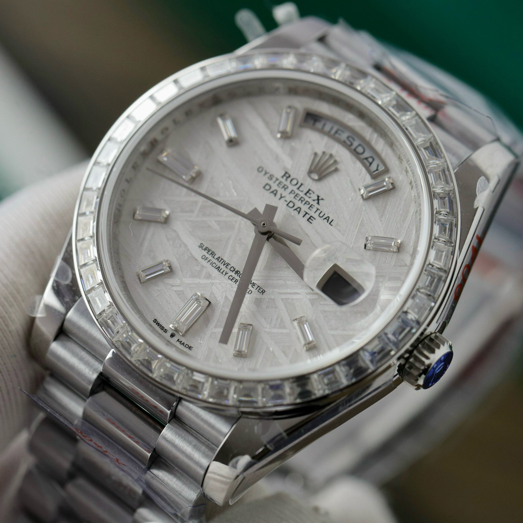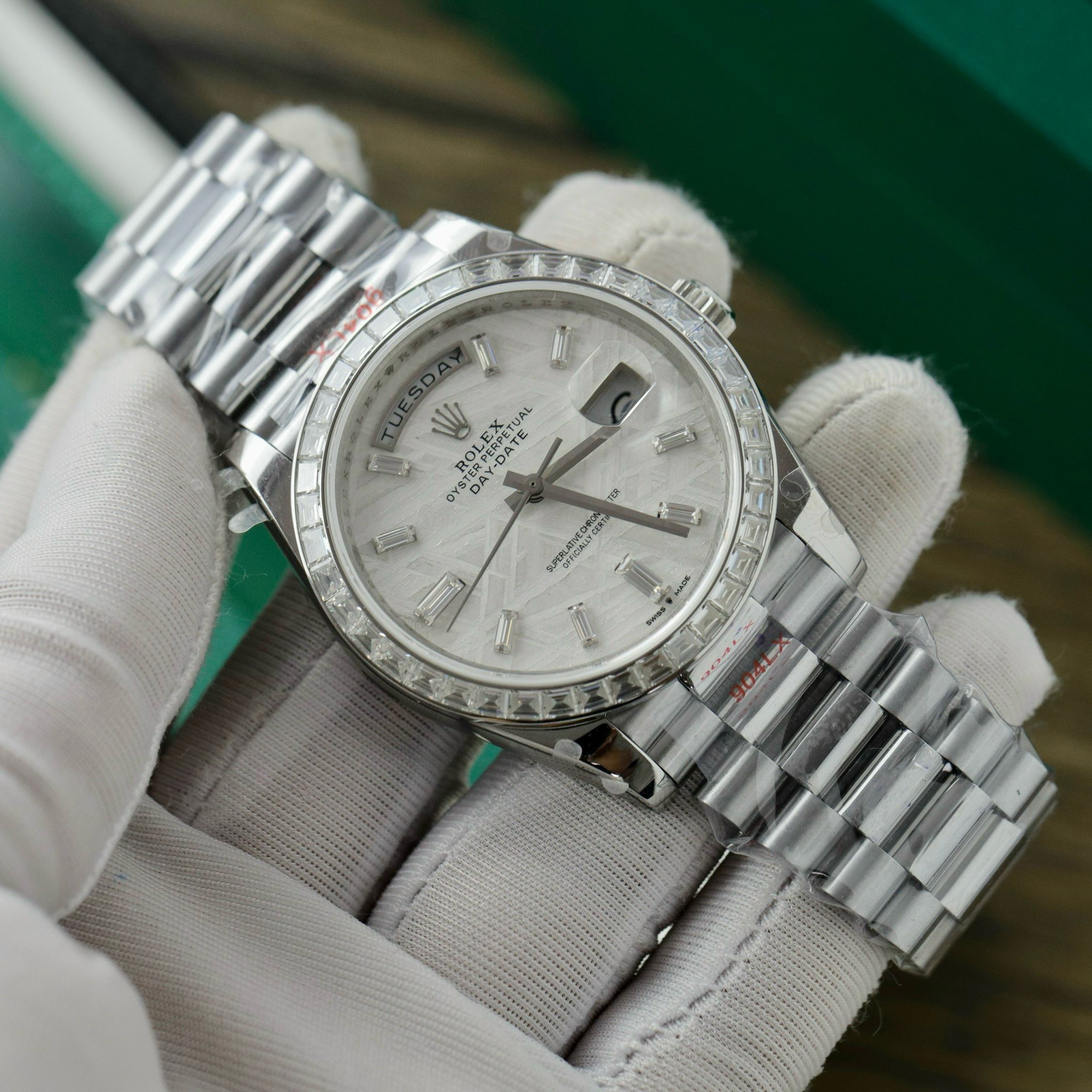 Rolex Day-Date Meteorite Dial Customs Moissanite Diamonds GMF is available at DWatch Global.