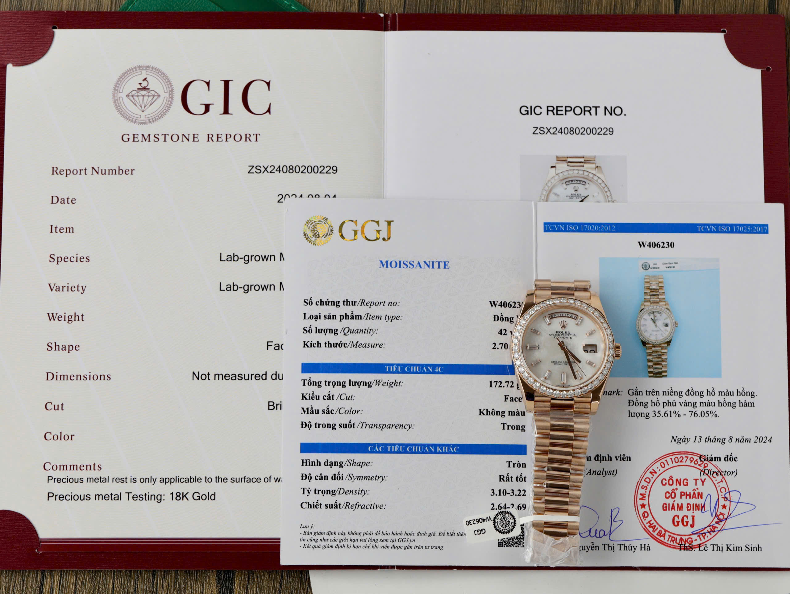 Rolex Day-Date Mother Of Pearl Dial Customs Moissanite Diamonds GMF is available at DWatch Global.
