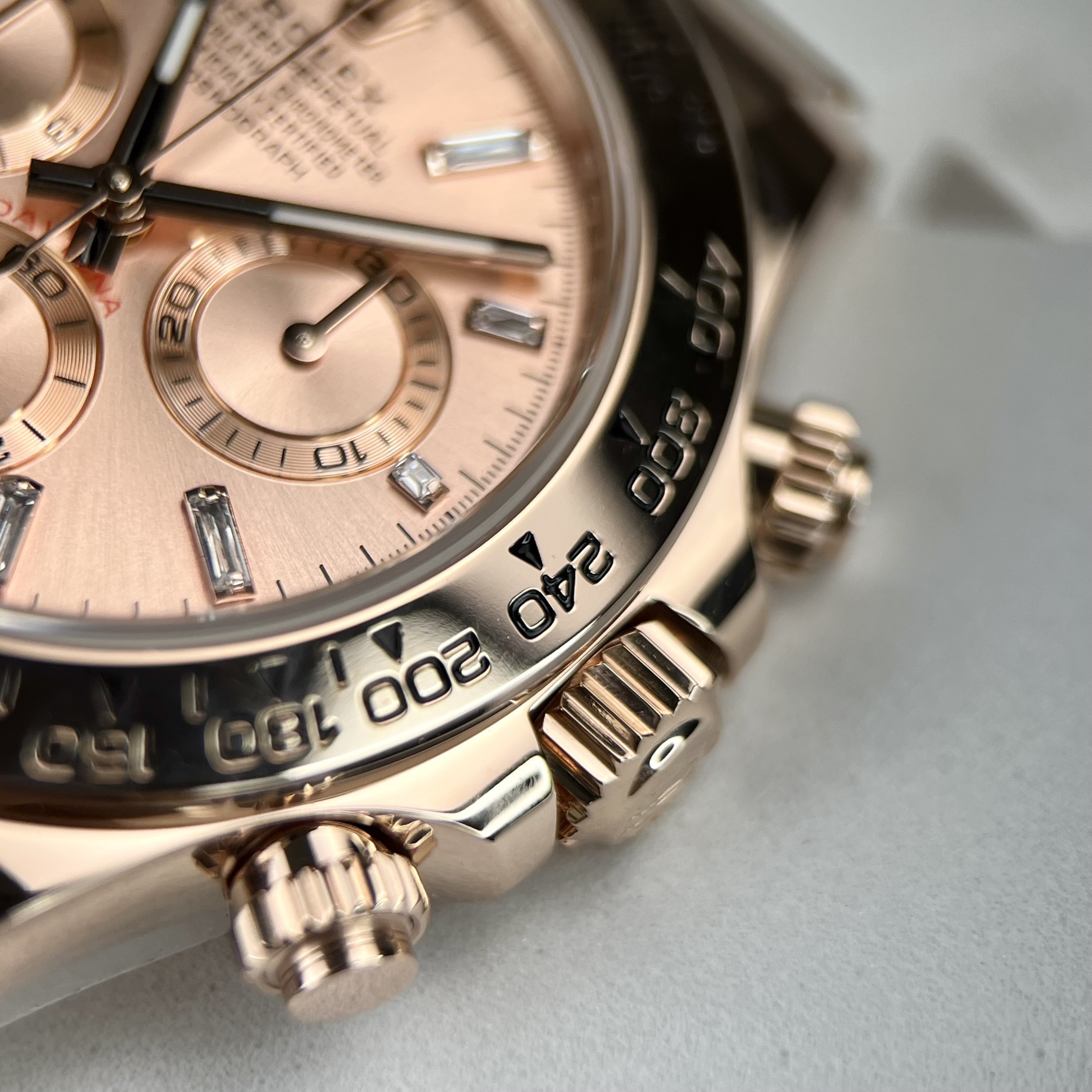 Today, DWatch Global is pleased to introduce the Rolex Daytona 116505 Replica Watches 18K Gold Wrapped Pink Dial 40mm, offering exceptional quality at an incredibly competitive price. Our replica is crafted to be 99% identical to the original, with minimal differences compared to the authentic version.