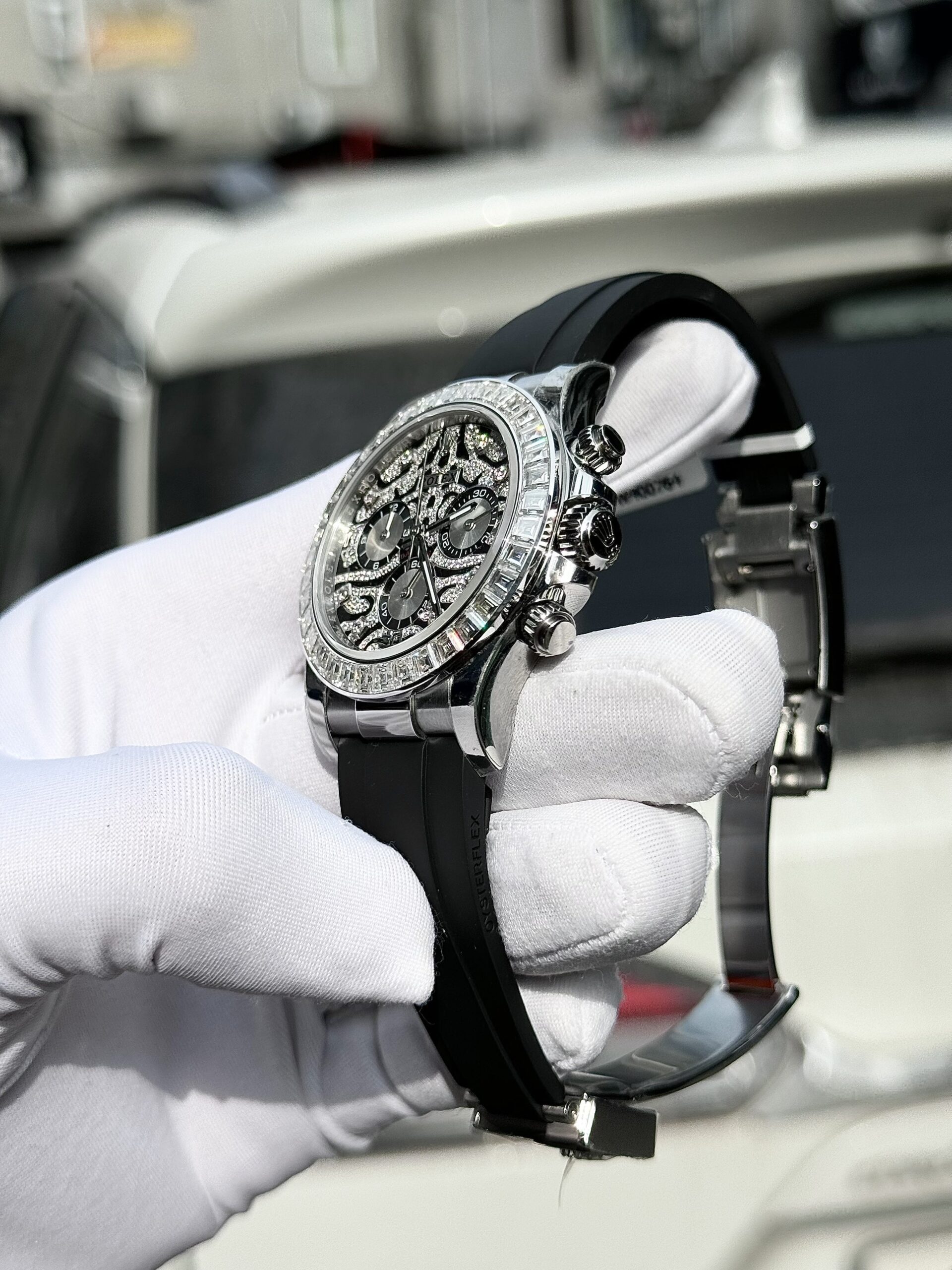 Rolex Daytona 116589TBR Eye Of Tiger Custom Moissanite Diamonds is available at DWatch Global.