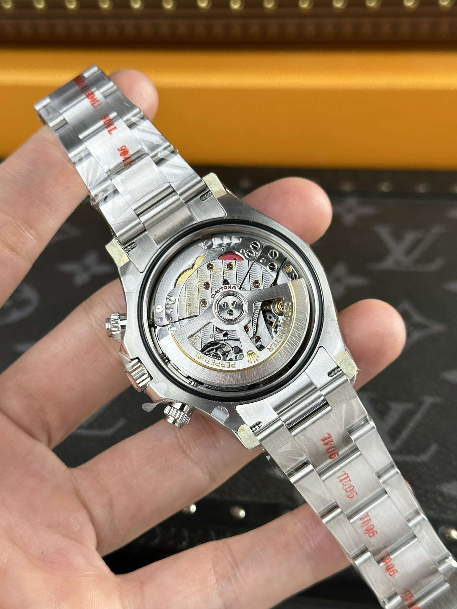 In the comparative image, the standout feature is the three silver circles on the watch face, the most significant update of the Rolex Daytona 126500LN Godzilla new version with Caliber 4131 movement. The edges of the smaller circles have an added brightness, enhancing the cleanliness, both in terms of angle and brightness. However, concerning the silver circles, in my personal opinion, the lines compared to the genuine product are not as delicate but are not discernible to the naked eye, details may be observed through comparison with natural light.