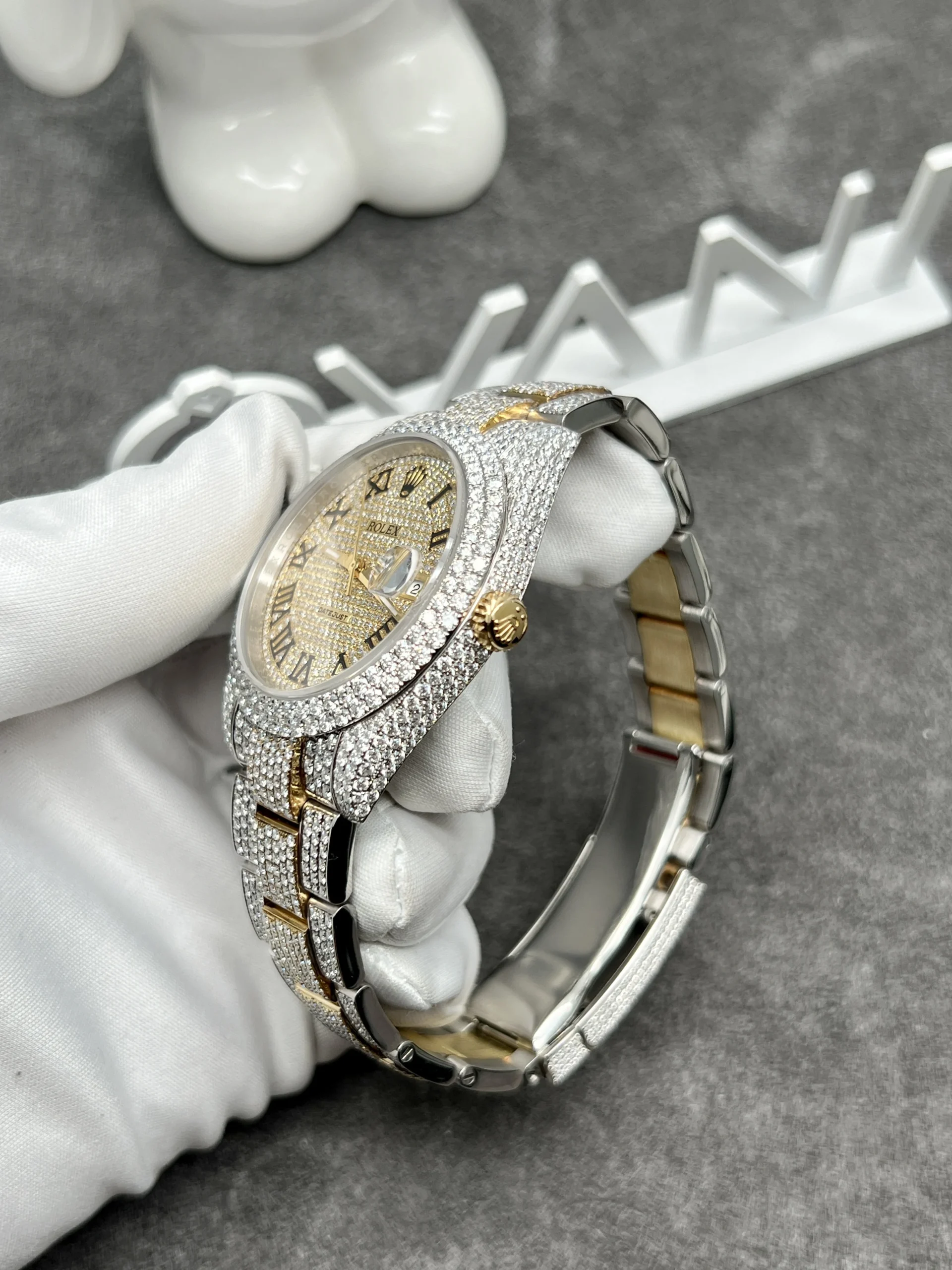 Rolex Iced Out Full Moissanite Diamonds DateJust Demi Gold is available at DWatch Global.
