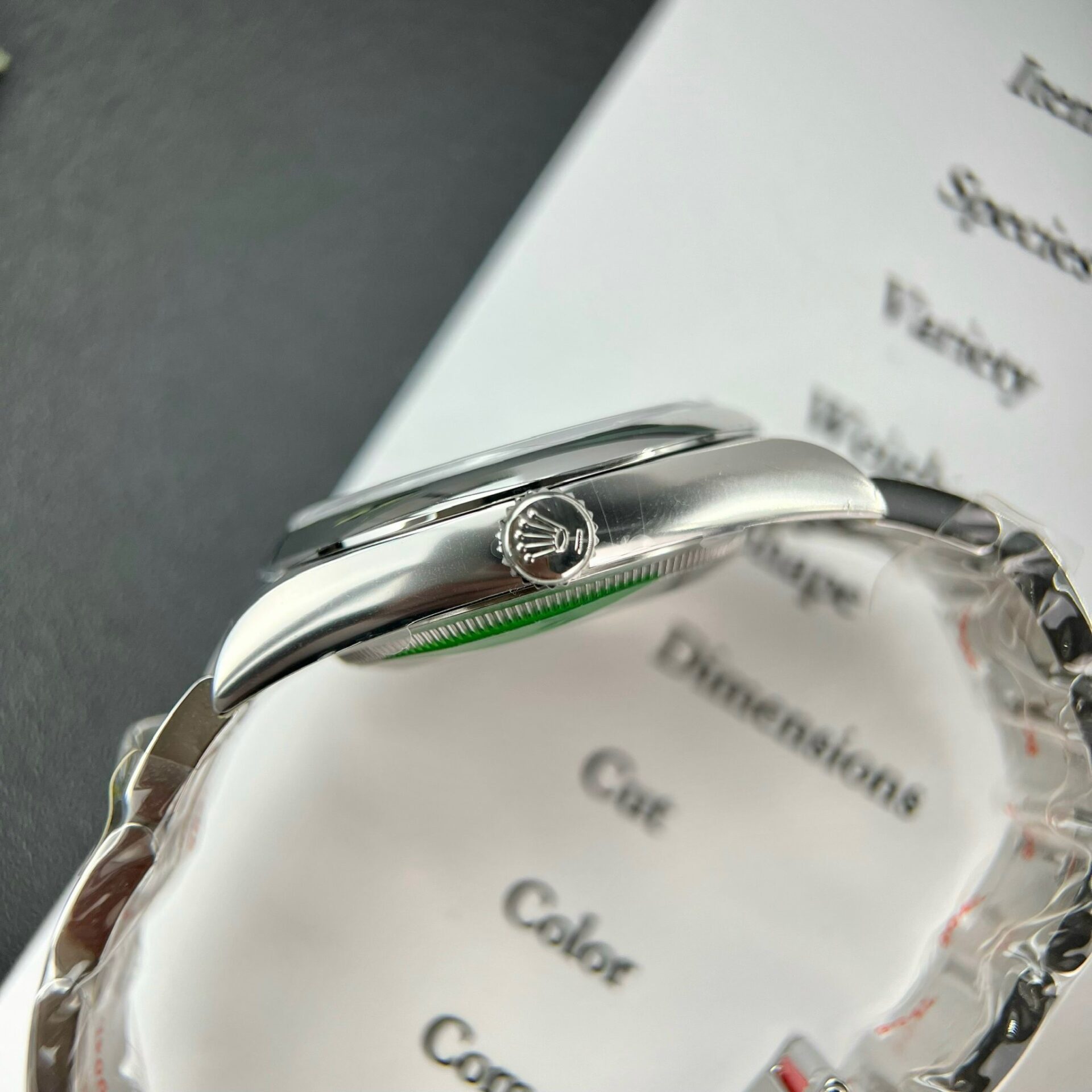 Maintaining the 36mm size similar to its predecessor, distinguishing it from the previously introduced 41mm version. Historically, the largest size for the Rolex Oyster Perpetual was 39mm, only increasing to 41mm in 2020.