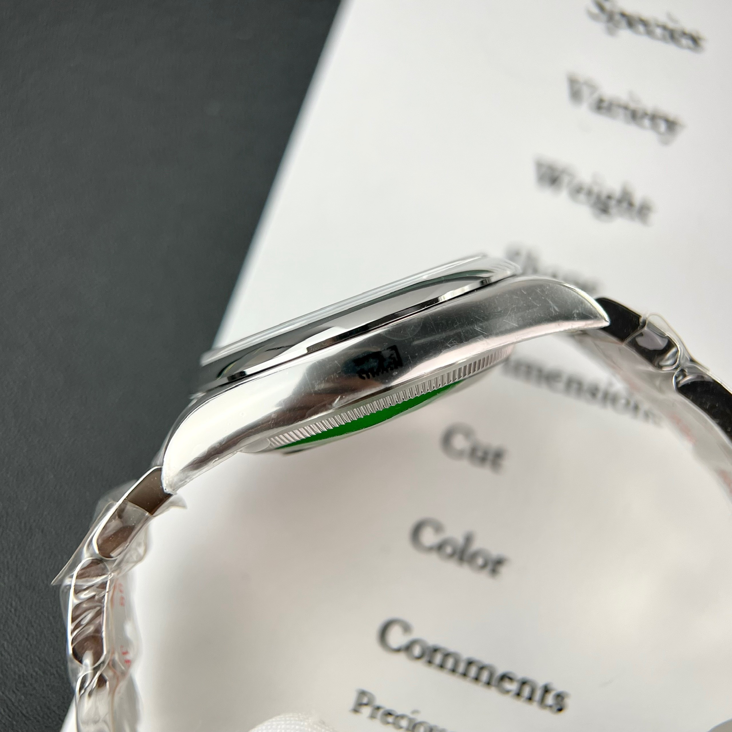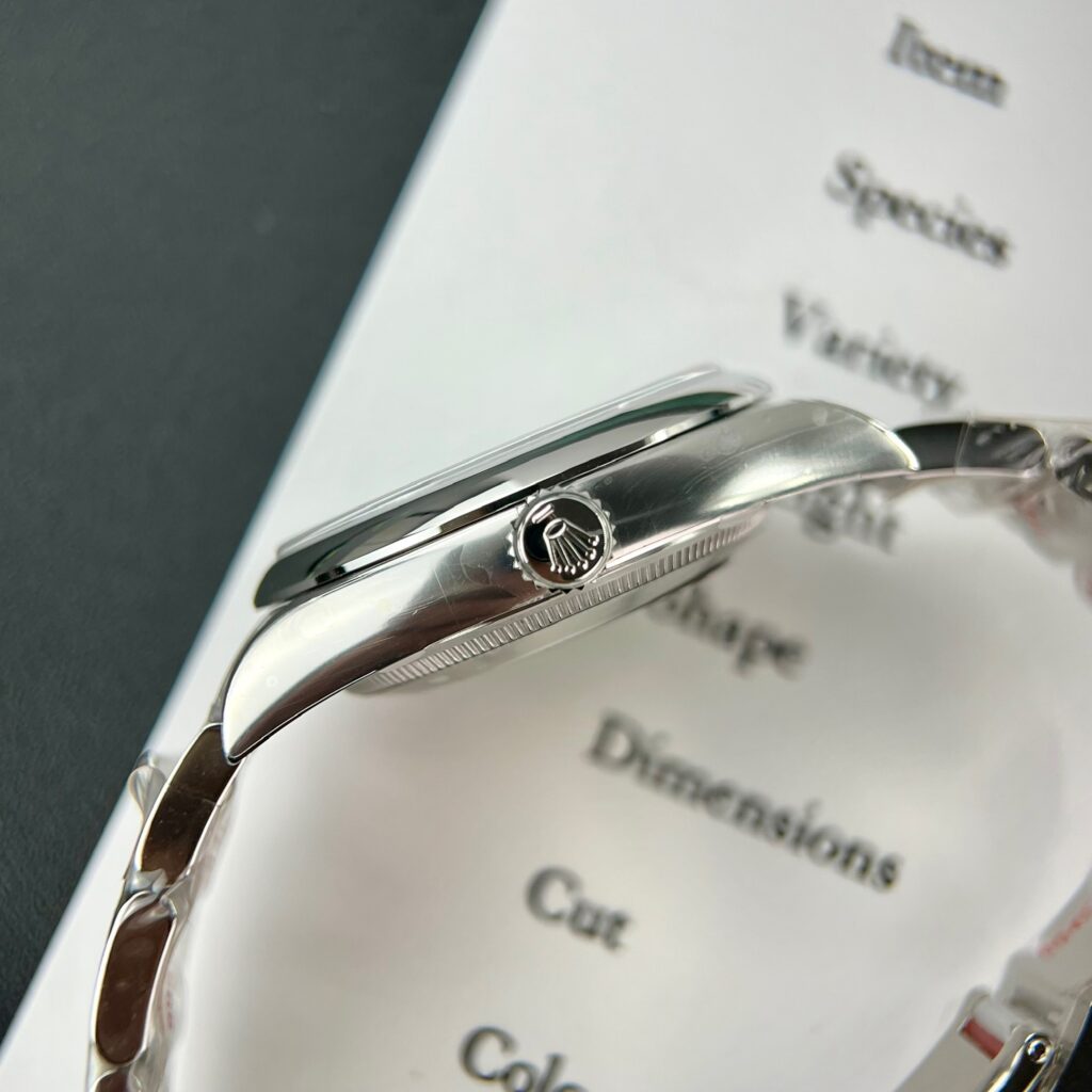 Rolex maintains its tradition of using a solid case back, concealing the movement within. However, a portion of the enhancements can be seen through the dial, notably the “Swiss Made” inscription at the 6 o’clock position. The crown emblem also appears, indicating to the wearer that the watch utilizes a new movement.
