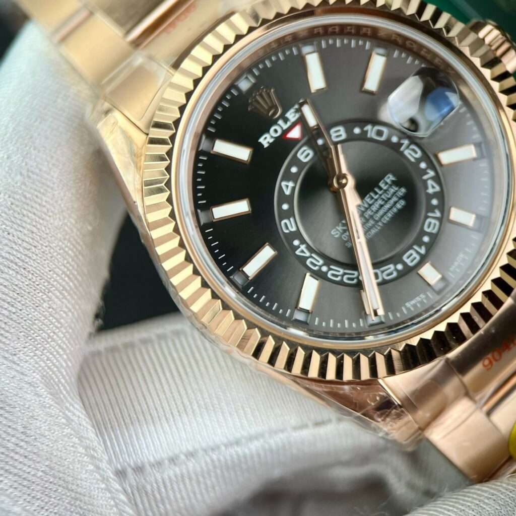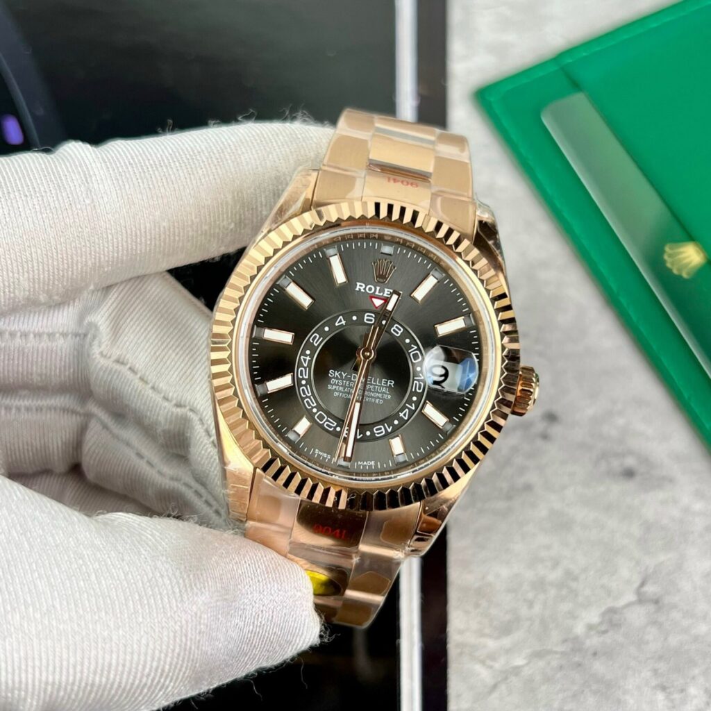 Rolex always stands out from other luxury watch brands like Patek Philippe and Audemars Piguet by focusing on simple and practical features instead of chasing trends with overly complicated timepieces. The Rolex Sky-Dweller 326935-0007 Rhodium Dial is a testament to this uniqueness, making its appearance at DWatch Global in the form of a flawless replica watch version from the Noob Factory – Rolex Sky-Dweller 326935 Replica Watches Best Quality Rhodium Dial.
