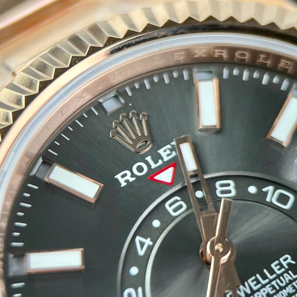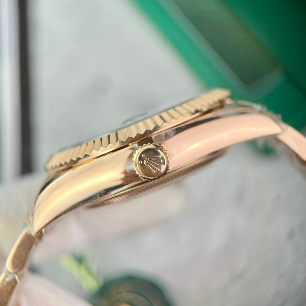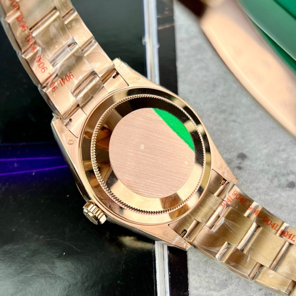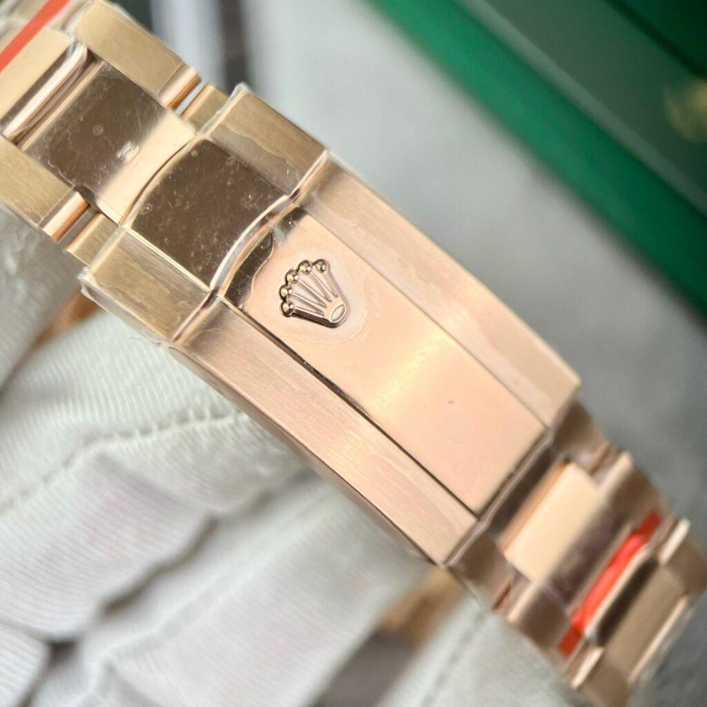 Externally, this Replica Rolex watch retains the Oyster case with a water resistance of 100m. With Everose gold plating, a diameter of 42mm, and a fluted bezel similar to the Datejust and Day-Date series, but with the ability to rotate as described.
