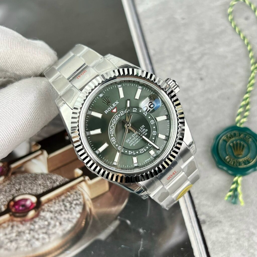 Rolex Sky-Dweller 336934 Replica Watch Green Dial Oyster Strap 42mm