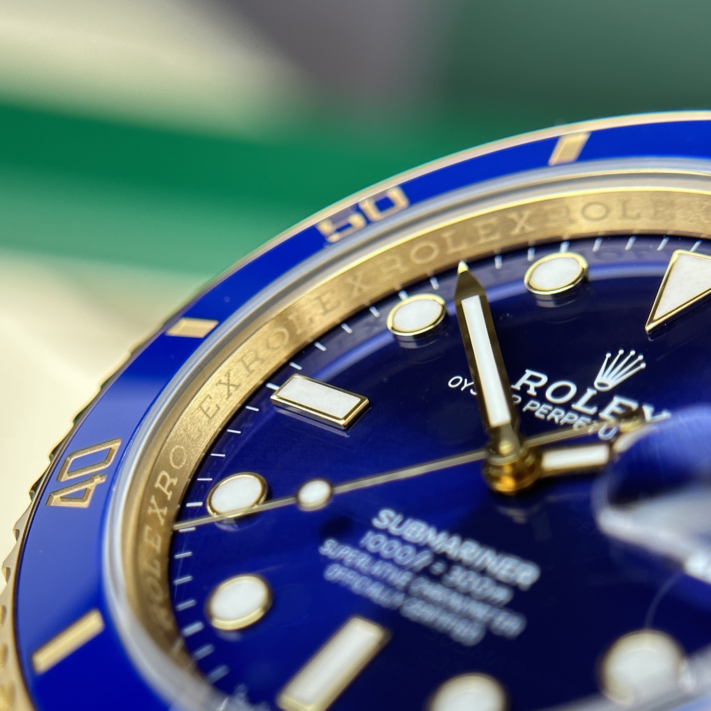 The Rolex Submariner 126618LB Best Replica Watch VS Factory is a symbol of Rolex’s diving watch line, with a water resistance of up to 100 meters. This watch is crafted from high-quality 904L steel with gold plating, making it both impressive and luxurious. The 41mm round dial is ocean blue, symbolizing the sea, and it features a blue Cerachrom bezel that matches the large Mercedes hands and markers, all of which are coated with Rolex’s exclusive Chromalight luminescent material for visibility.