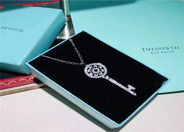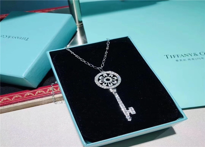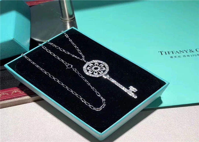 Tiffany And Co Key Pendant Necklace Custom Diamond 18K White Gold