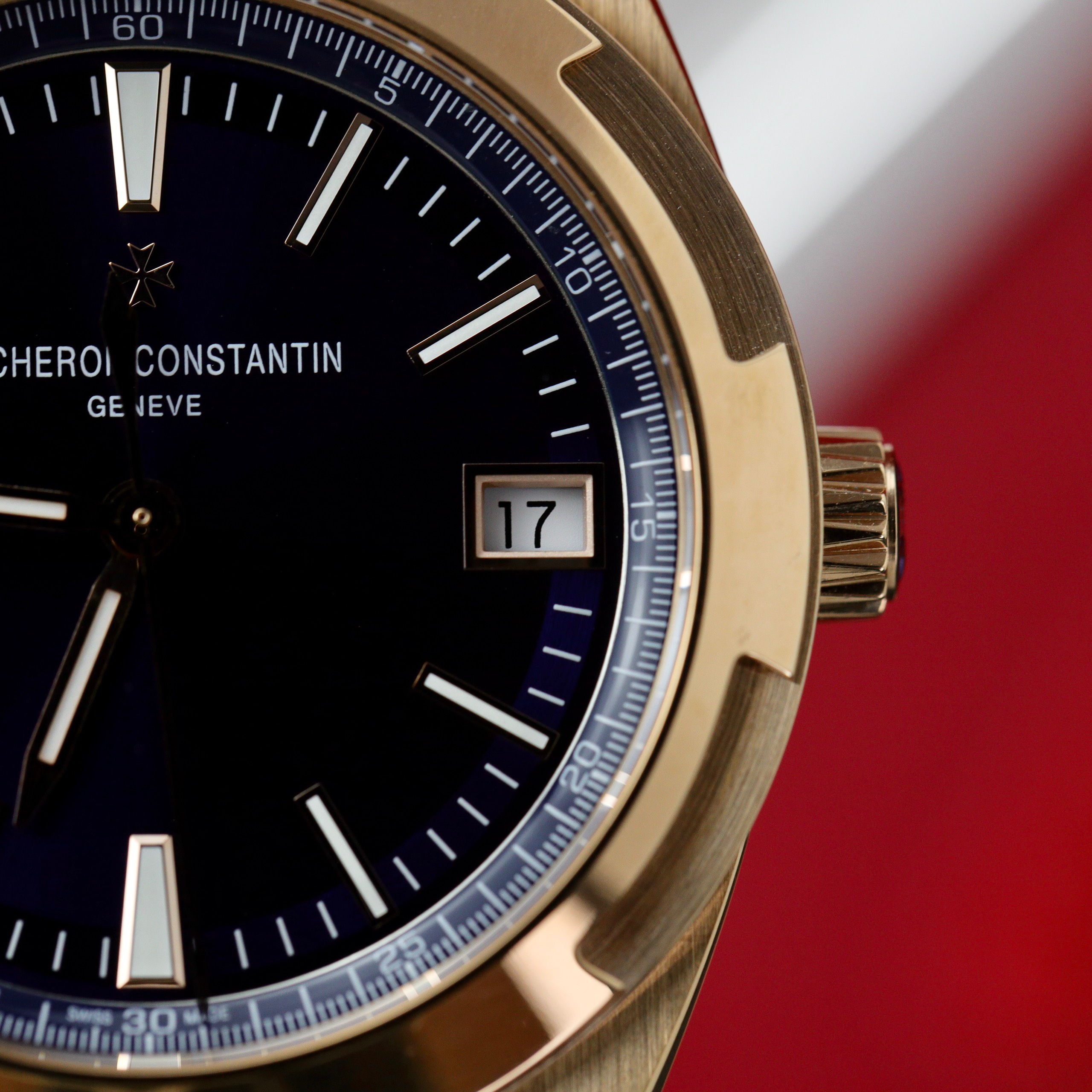 Featuring a meticulously crafted round case made of gold-plated steel, the Vacheron Constantin Overseas 4500V shines with an aura of power and elegance, while maintaining its subtle and lightweight appeal.