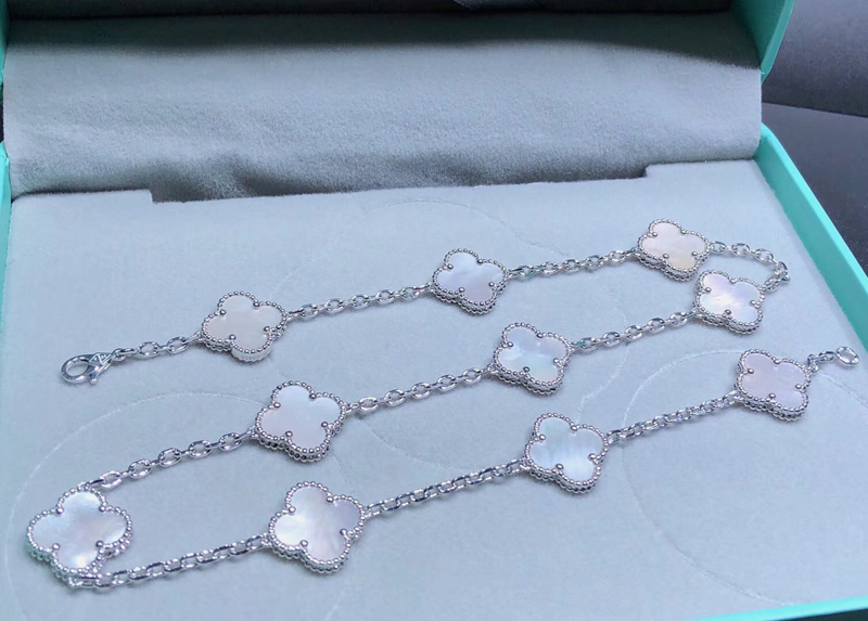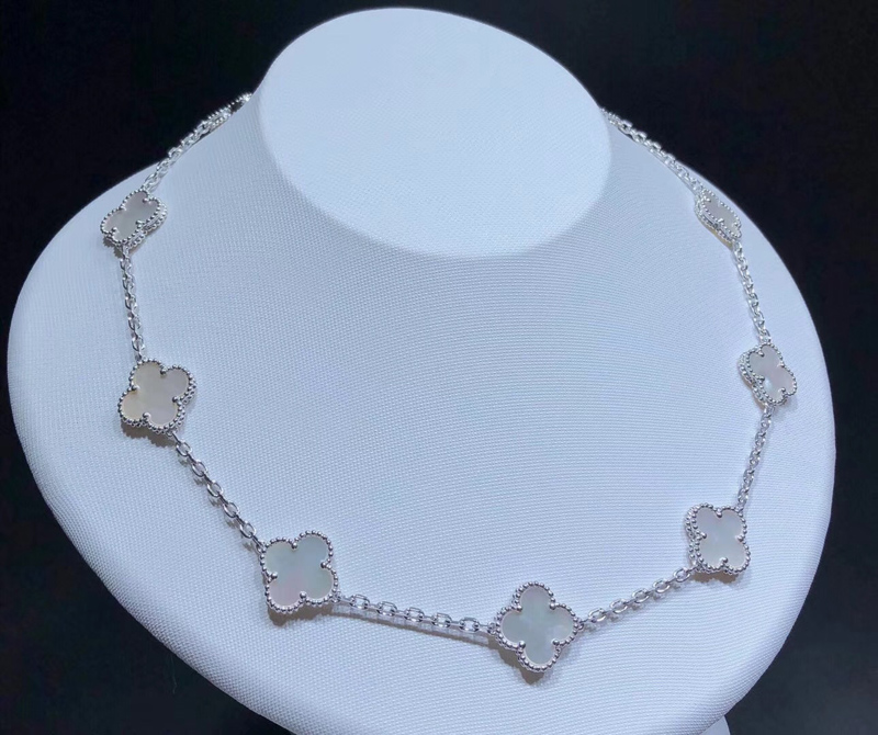 Van Cleef And Arpels Alhambra Necklace Custom 18K White Gold Mother Of Pearl 10 Motifs
