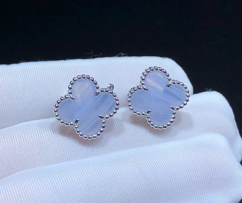 Van Cleef And Arpels Alhambra Womens Earring Gemstone 18K White Gold Custom