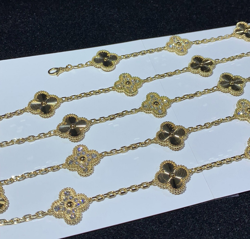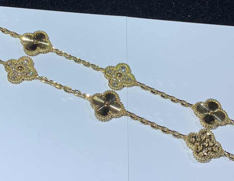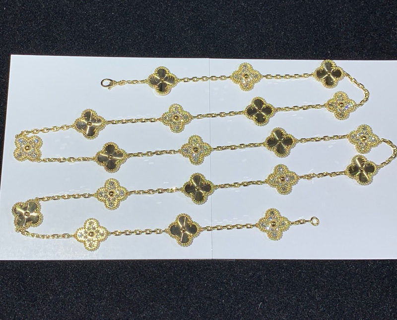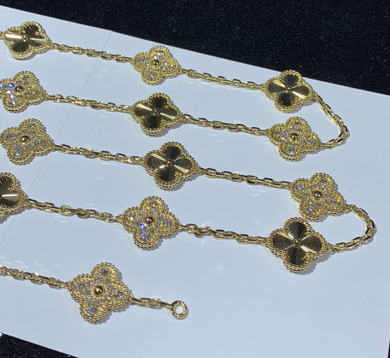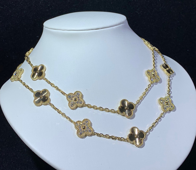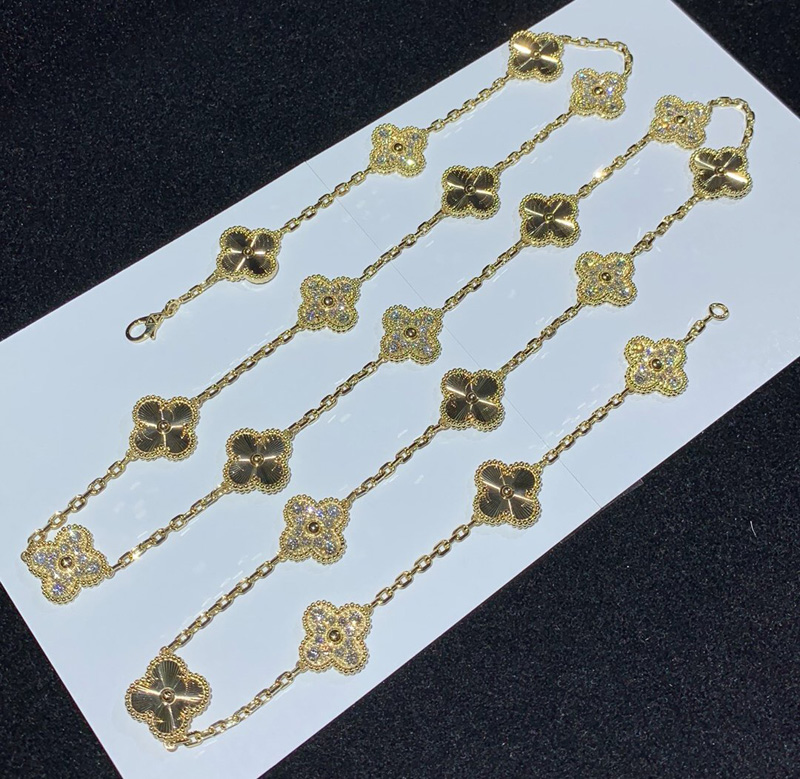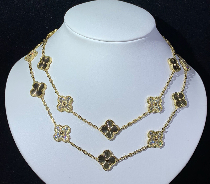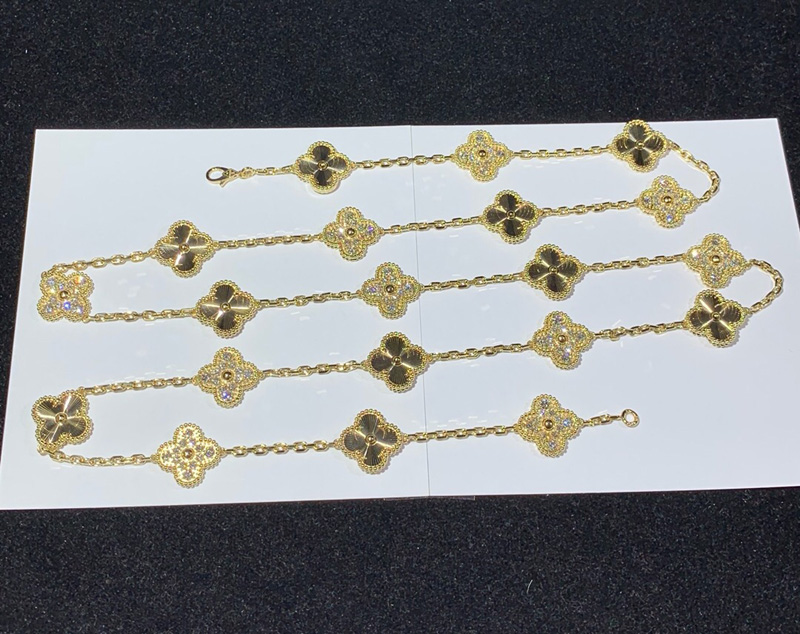 Van Cleef & Arpels Alhambra Necklace 20 Motifs Womens Custom Natural Diamond 18K Gold