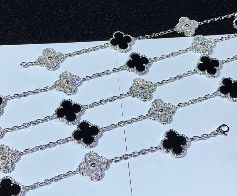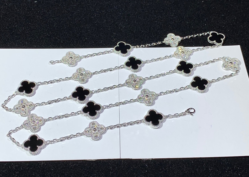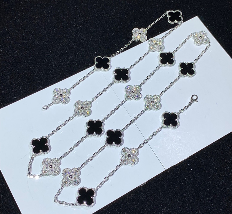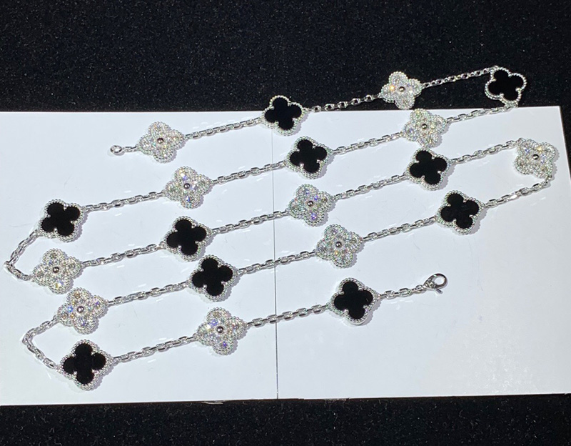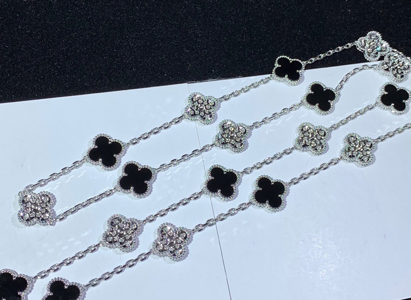Van Cleef & Arpels Alhambra Necklace 20 Motifs Agate Diamond 18K White Gold Custom