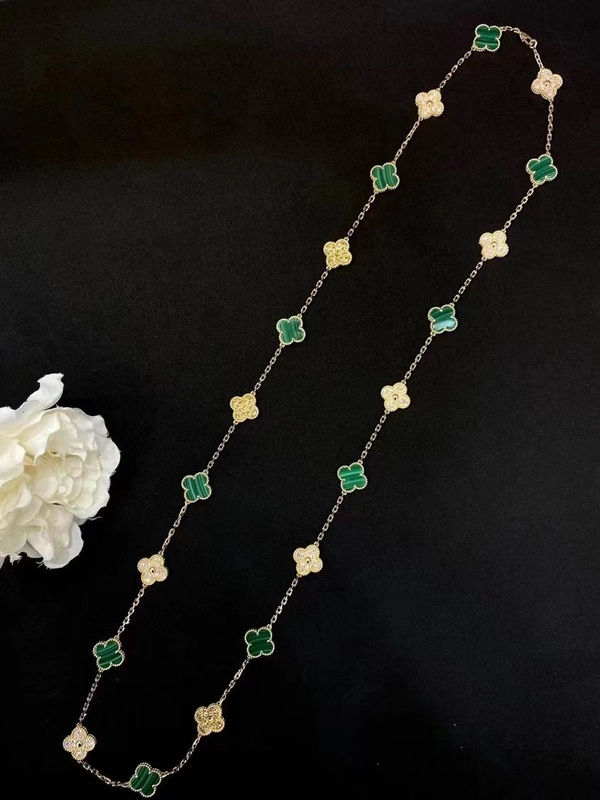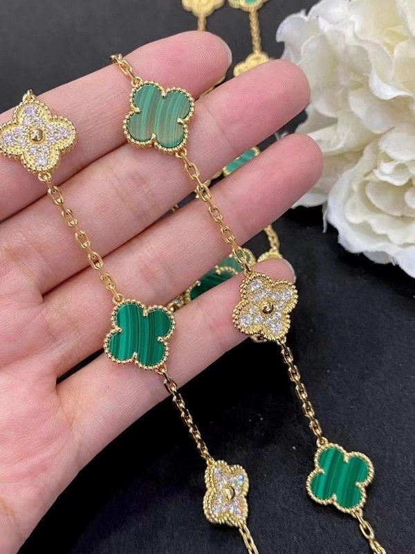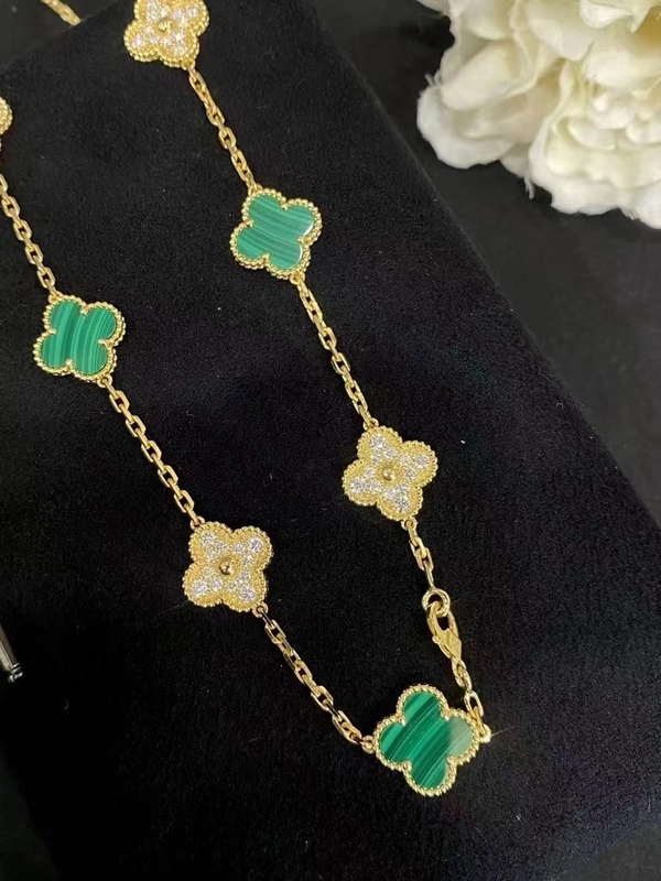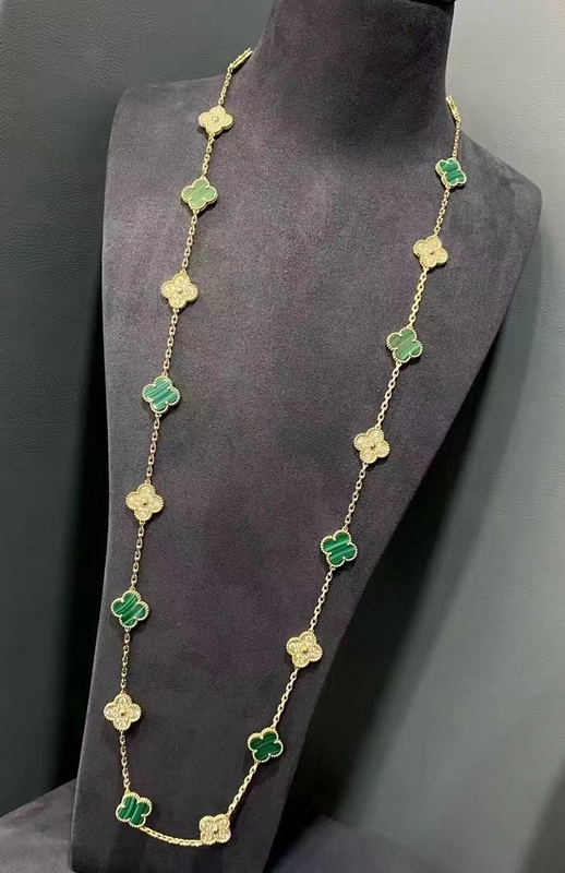 Van Cleef & Arpels Alhambra Necklace Custom 18K Gold Diamond Mother Of Pearl
