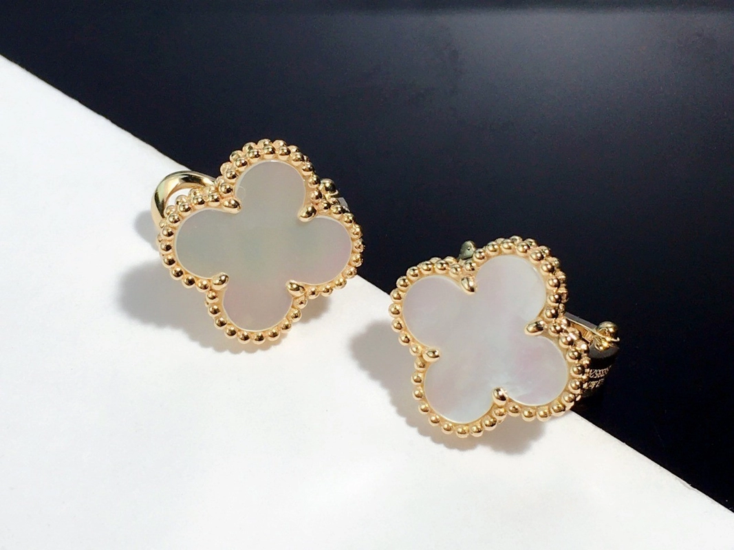 Van Cleef & Arpels Alhambra Womens Earrings Custom 18K Gold