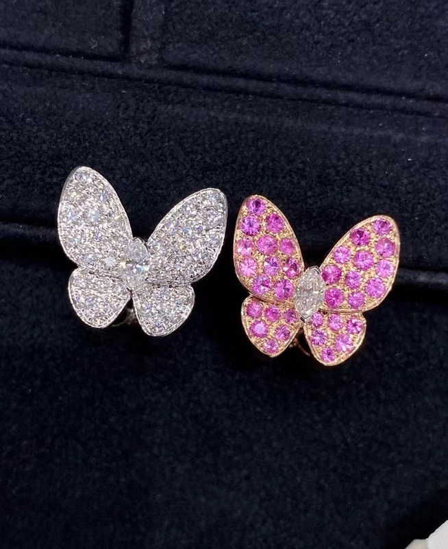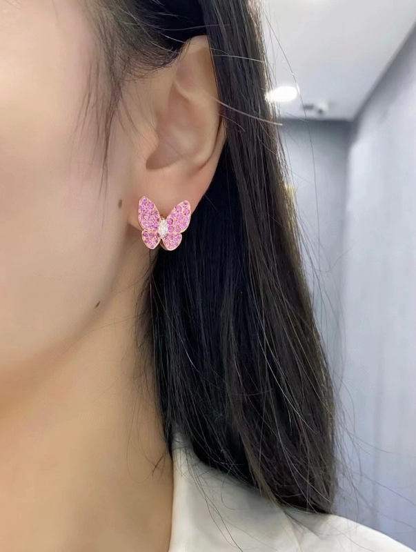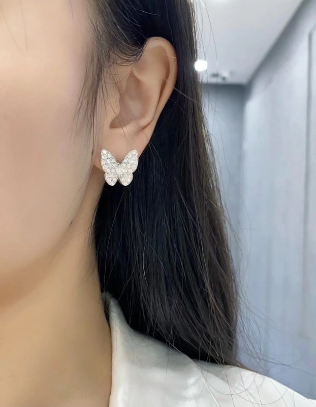 Van Cleef & Arpels Butterfly Finger Womens Earrings Diamond 18K Gold Custom