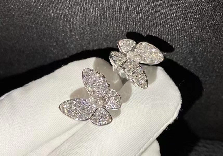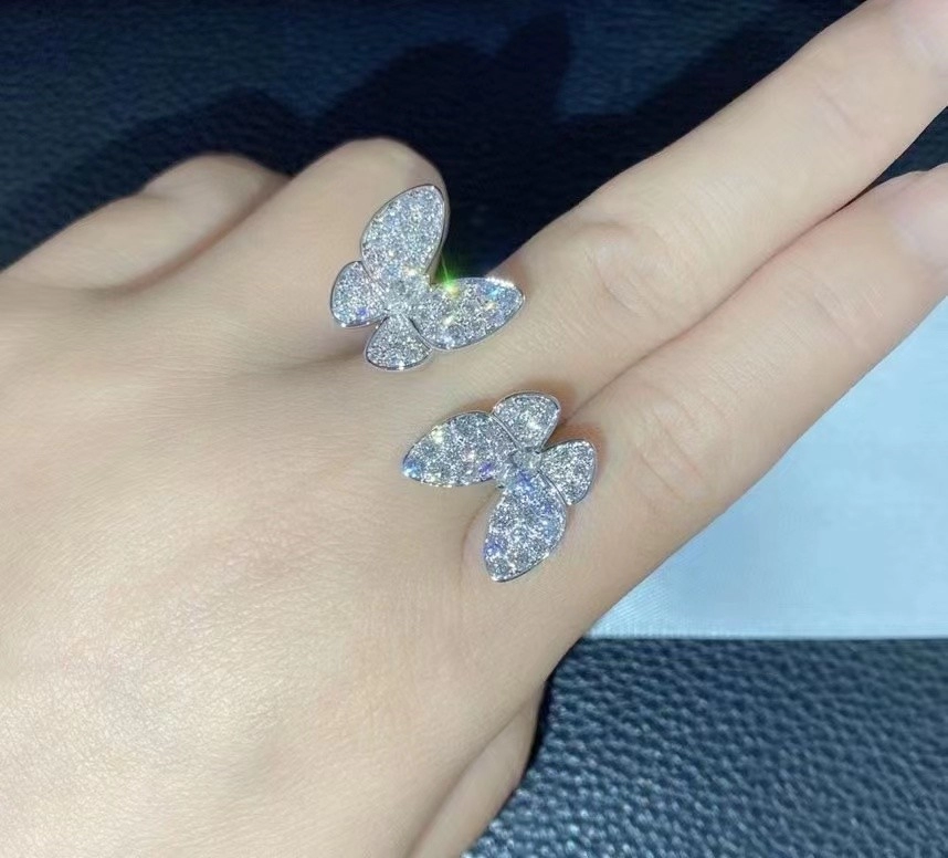 Van Cleef & Arpels Butterfly Finger Womens Rings Custom Diamond White Gold 18K