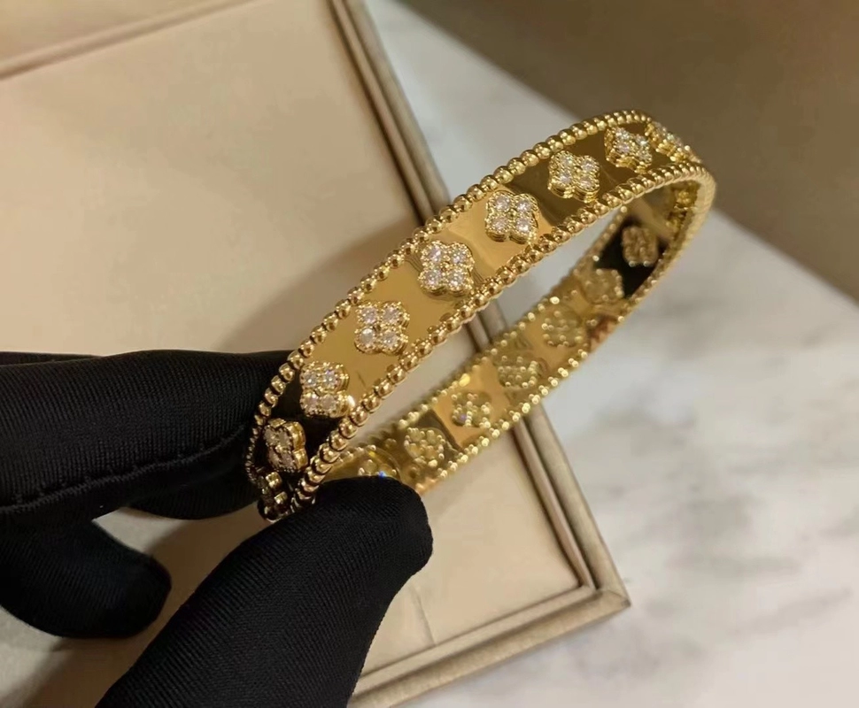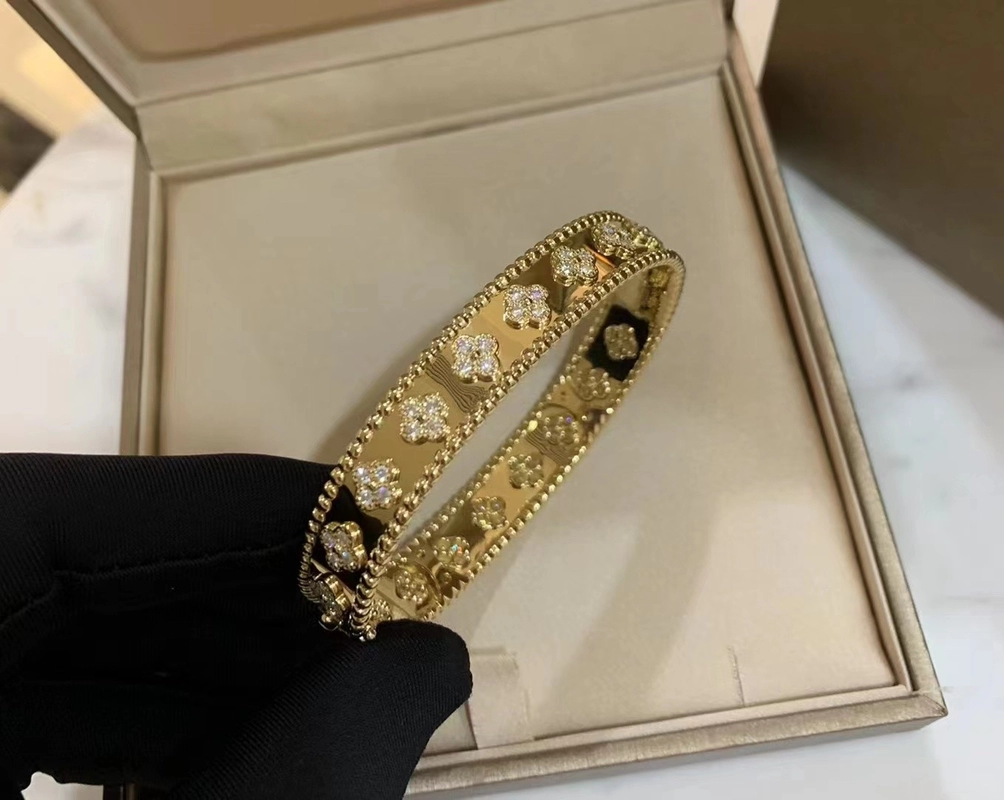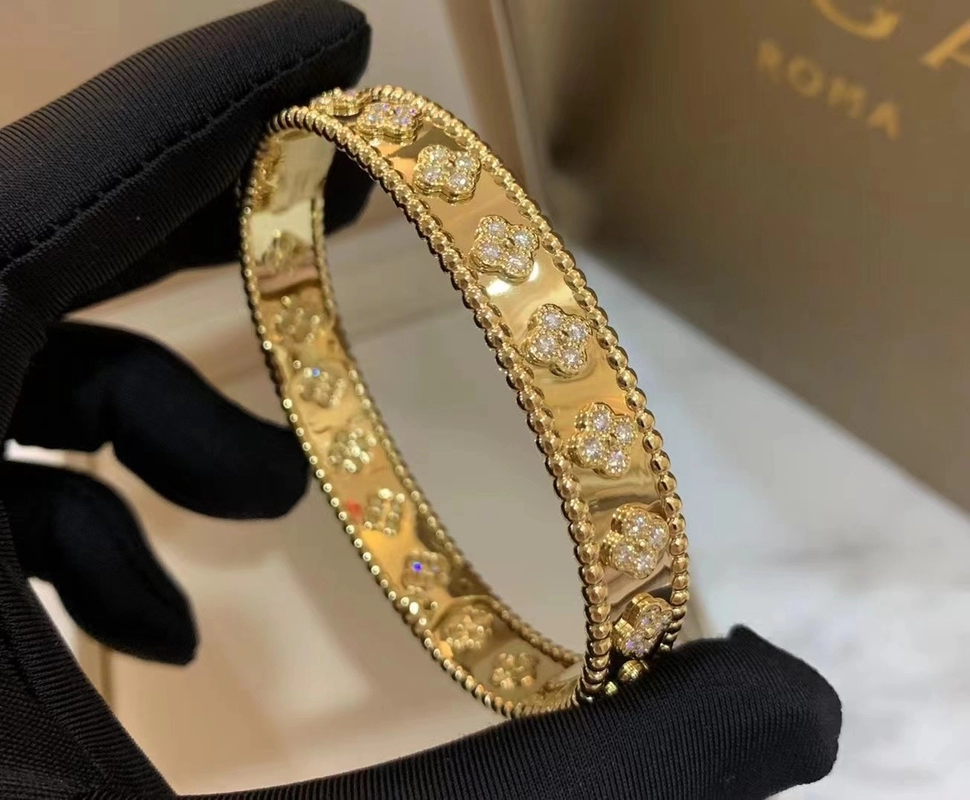 Van Cleef & Arpels Clover Texture Bracelet Custom Diamond Gold 18K