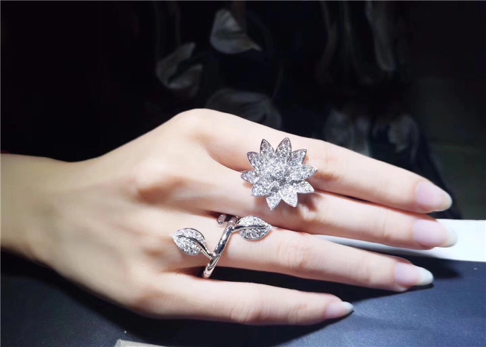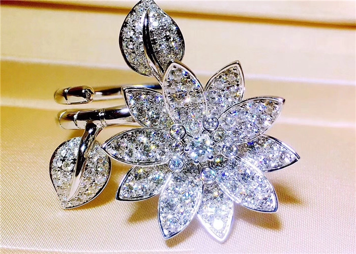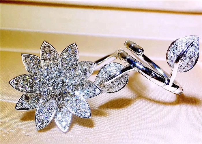 Van Cleef & Arpels Flower Texture Womens Rings Custom Diamond 18K White Gold