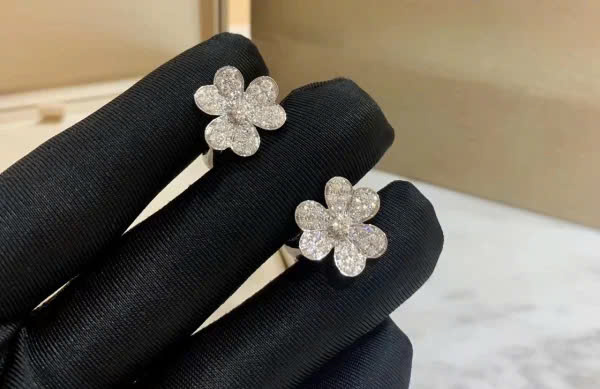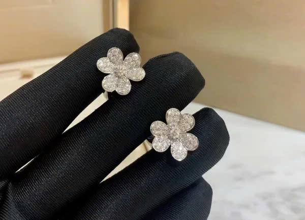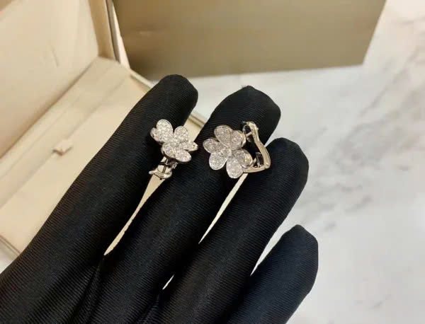 Van Cleef & Arpels Frivole Womens Earrings Natural Diamond 18K White Gold Custom