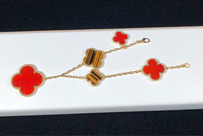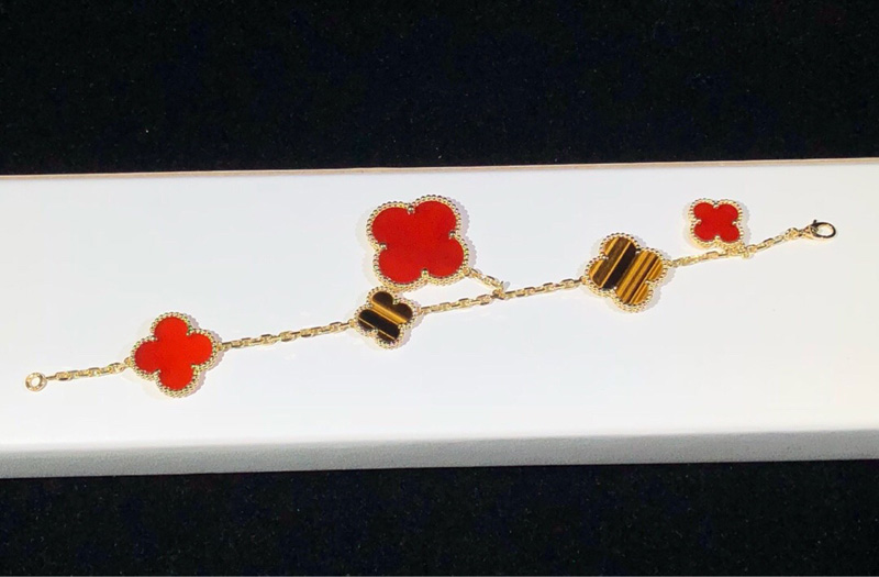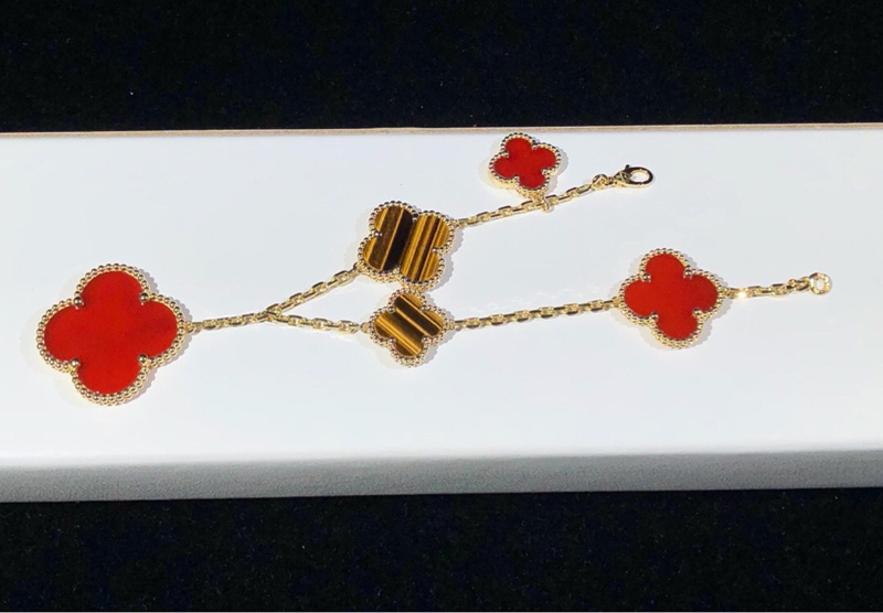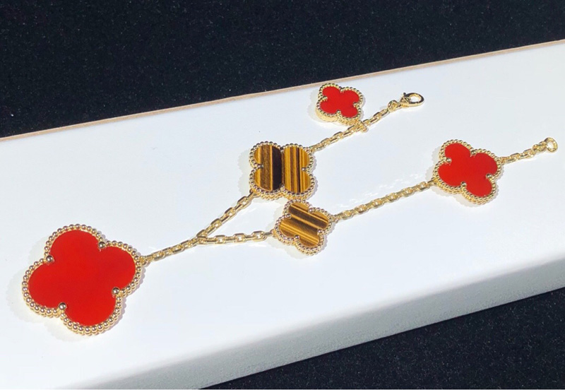 Van Cleef & Arpels Magic Alhambra Bracelet Gemstone 18K Gold Custom 5 Motifs