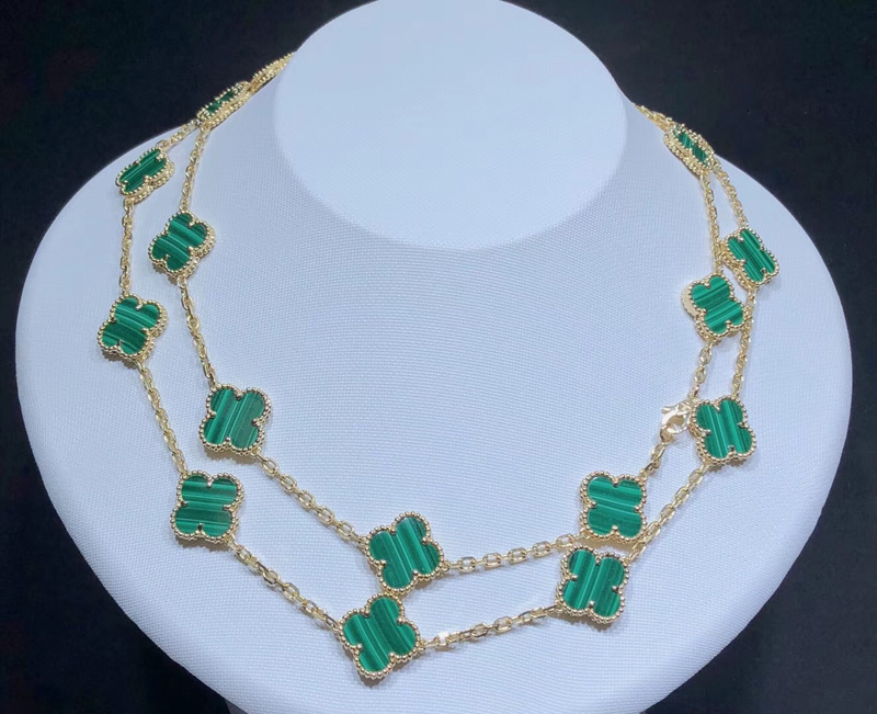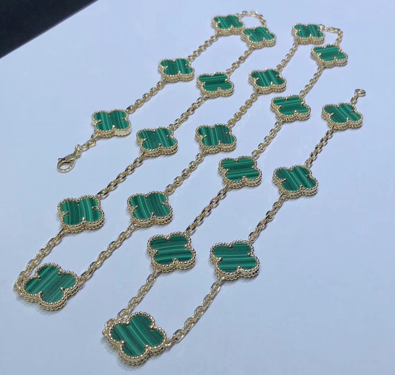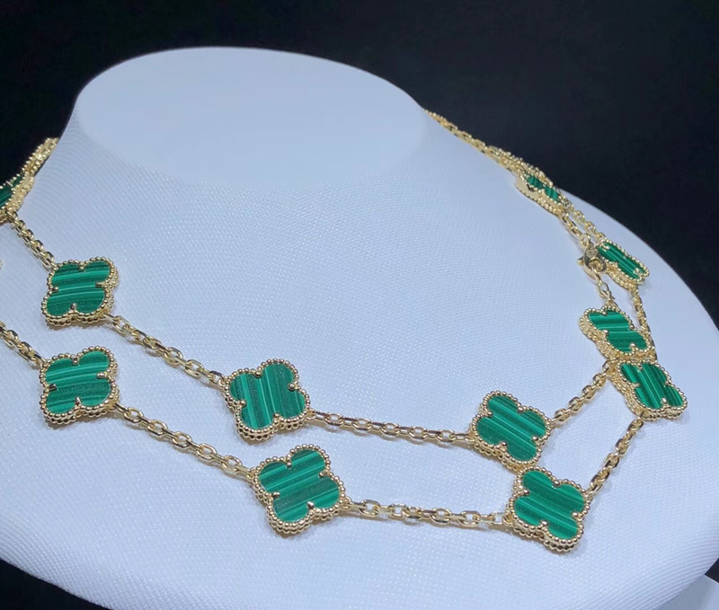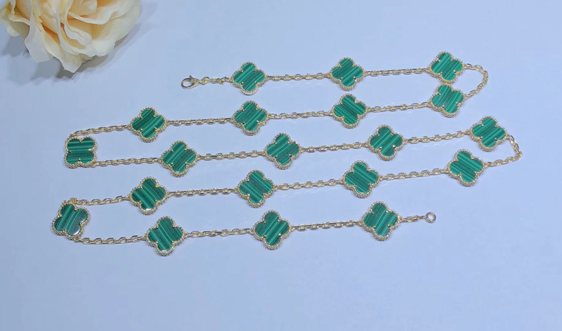 Van Cleef & Arpels Magic Alhambra Necklace Custom Gemstone 18K Gold 20 Motifs