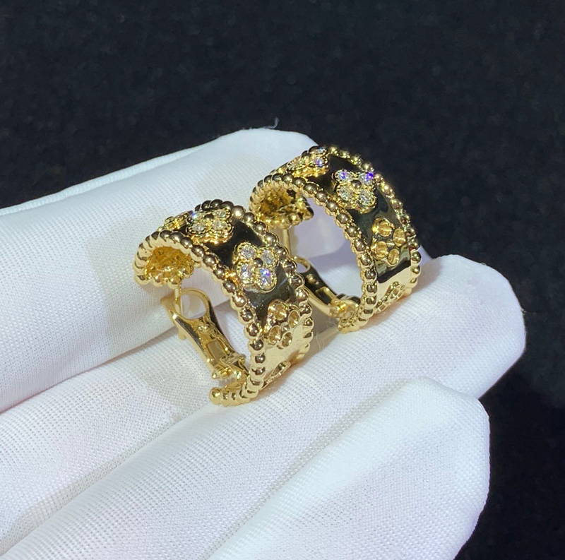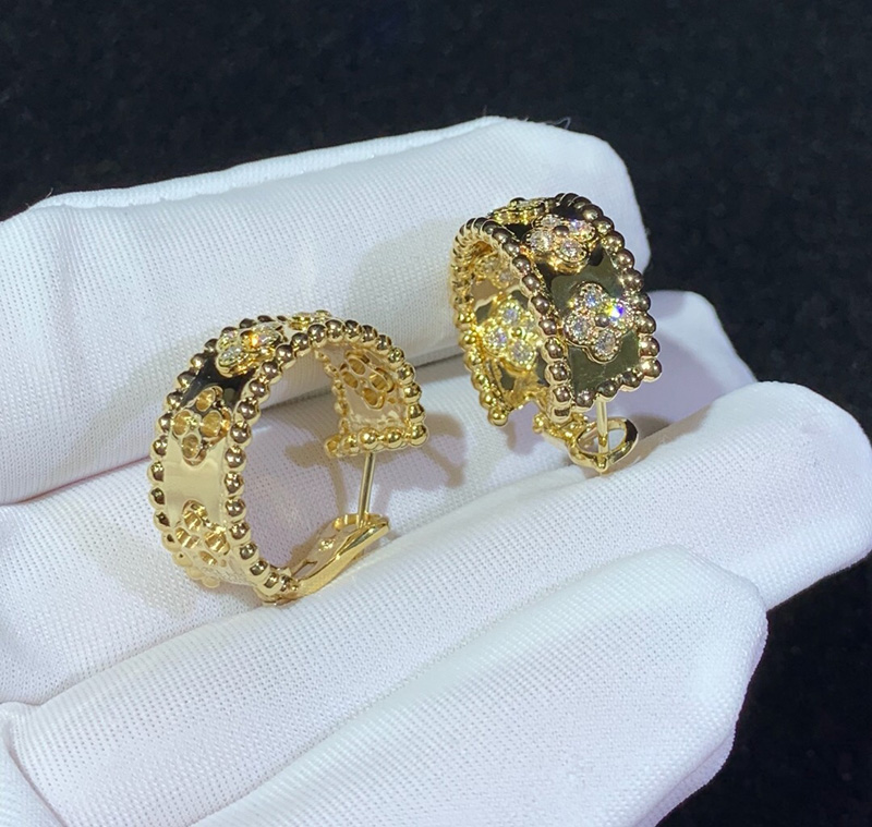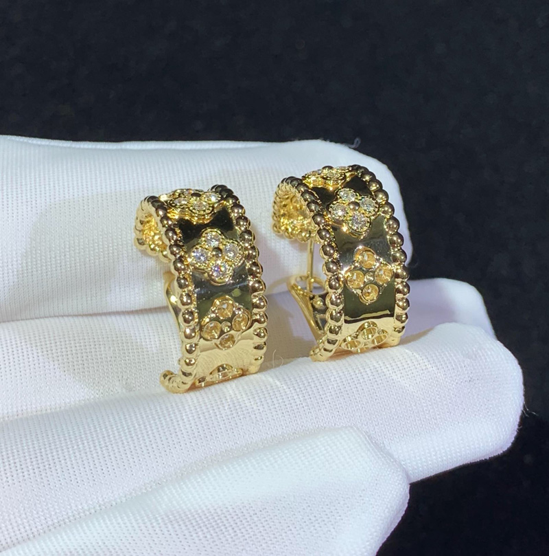 Van Cleef & Arpels Perlee Clovers Earring Natural Diamond 18K Gold Custom
