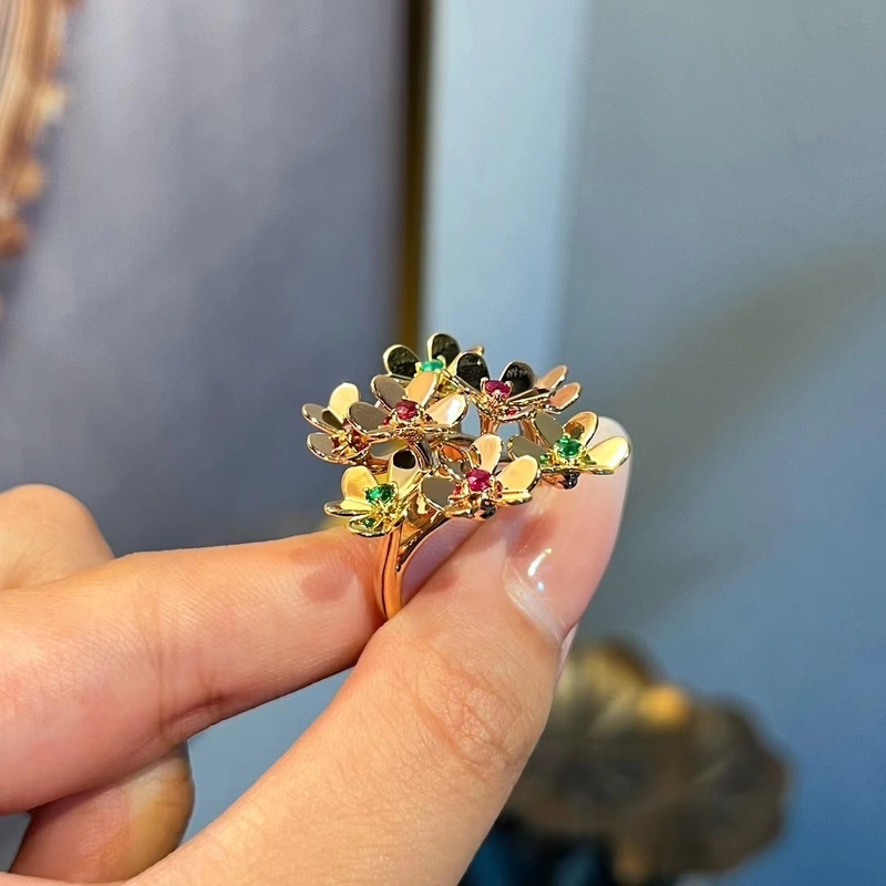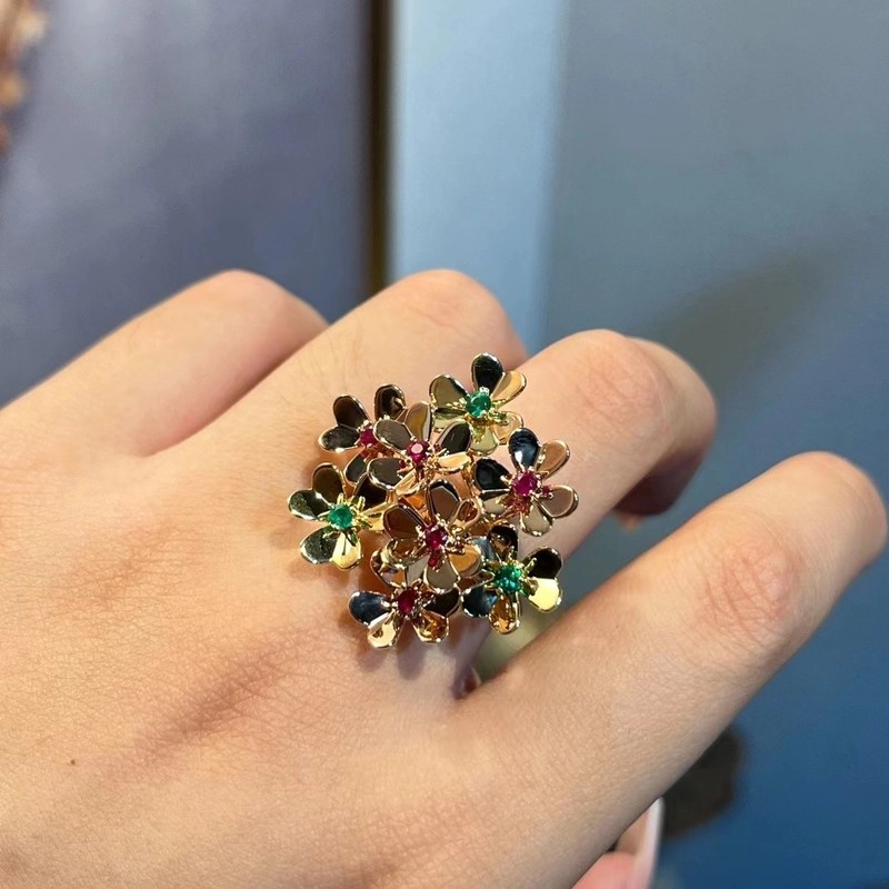 Van Cleef & Arpels Vignette Clover Rings Custom Diamond Ruby 18K Gold