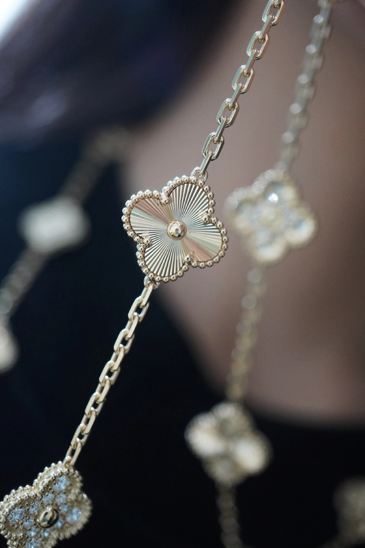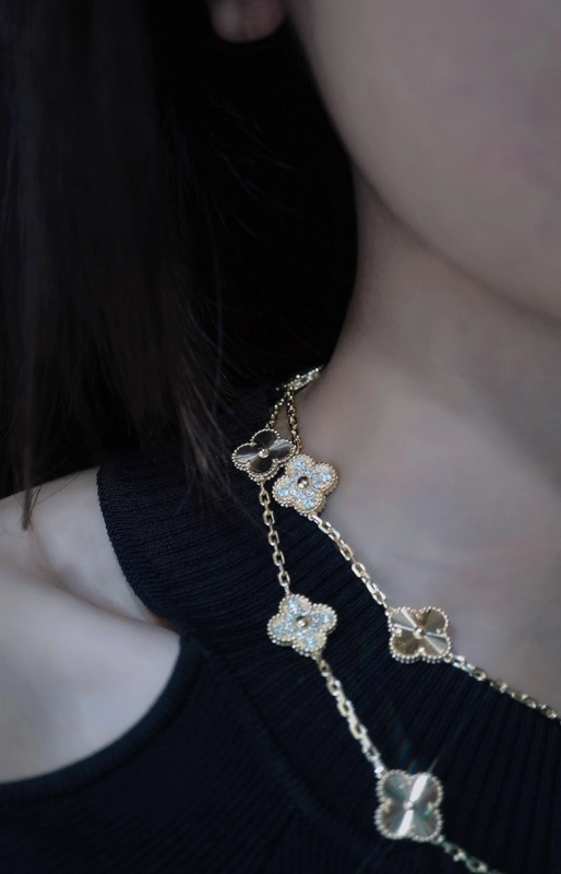 Van Cleef & Arpels Vintage Alhambra 20P Necklace Custom Diamond Gold