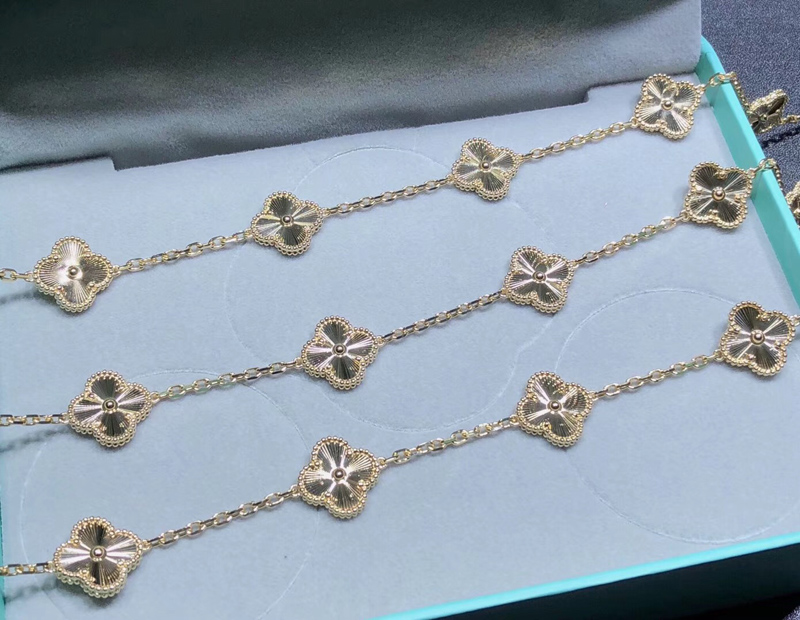 Van Cleef & Arpels Vintage Alhambra Necklace 10 Motifs Custom 18K Gold Womens