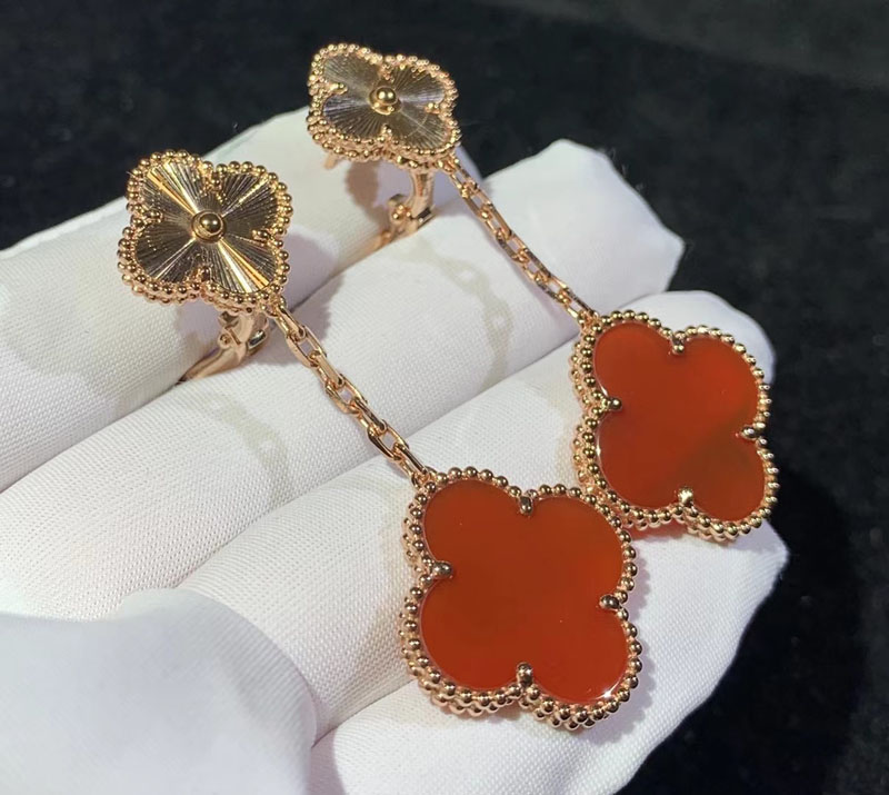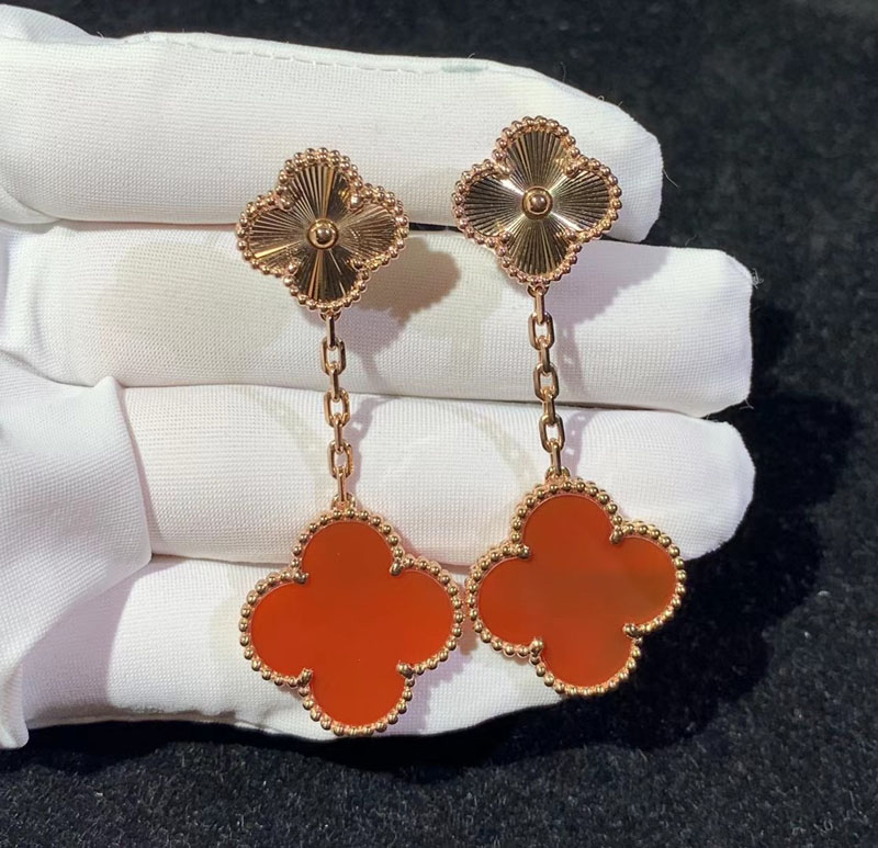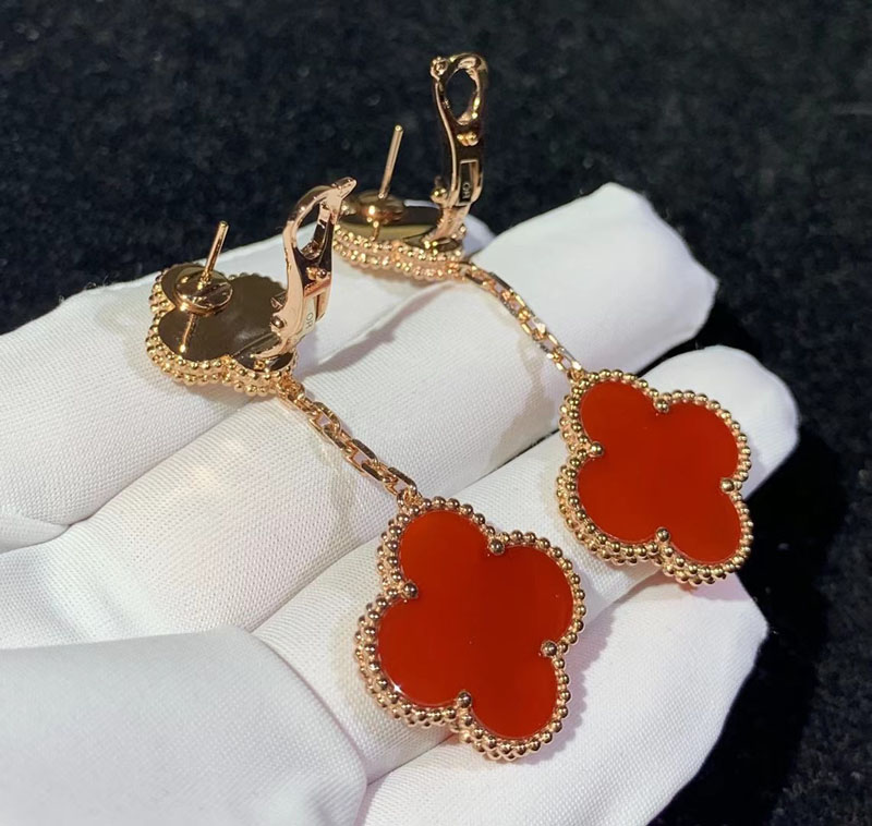 Van Cleef & Arpels Vintage Alhambra Womens Red Earring Custom 18K Rose Gold